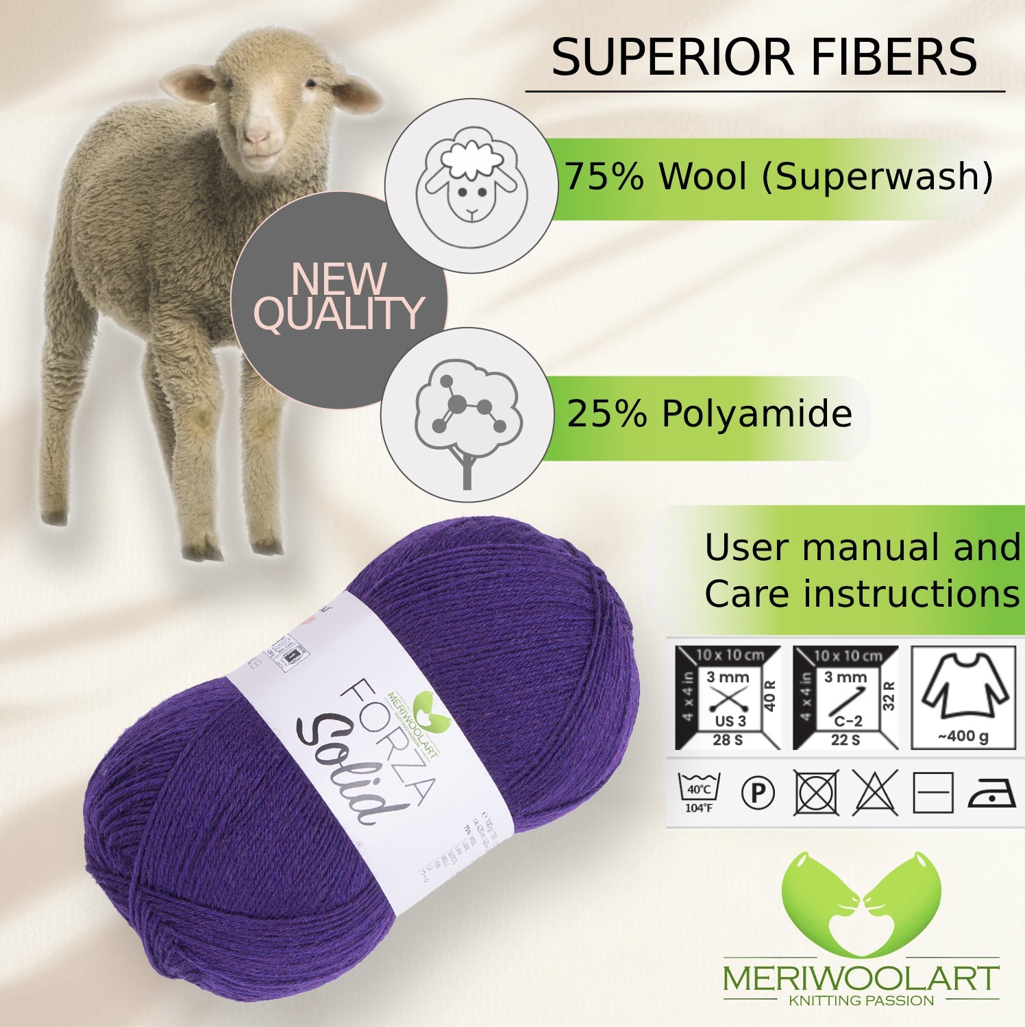 FORZA SOLID Purple-4622 WOOL SOCK YARN 100g 420m
