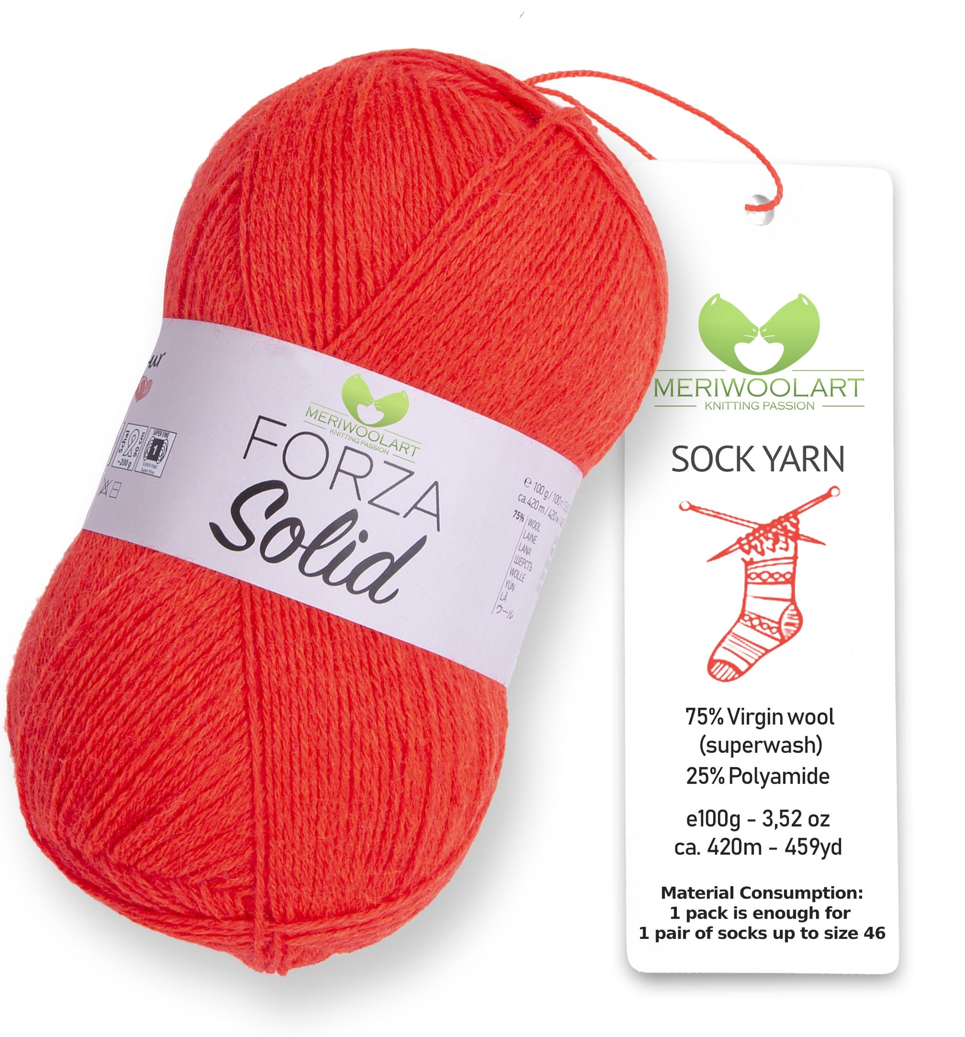 FORZA SOLID Neon Orange-4644 WOOL SOCK YARN 100g 420m