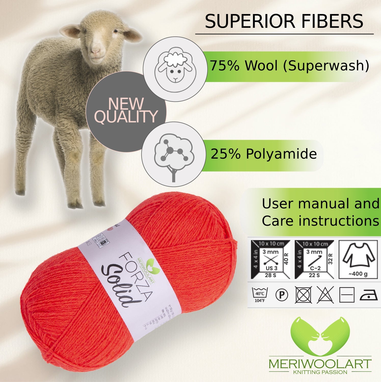Discover MeriWoolArt® Sock Yarn 4-Ply – 100g Merino Wool Yarn for Knitting & Crocheting, 75% Virgin Wool (Superwash), 25% Polyamide, 420m – Ideal for Socks for Men & Women, Sweaters & Cardigans