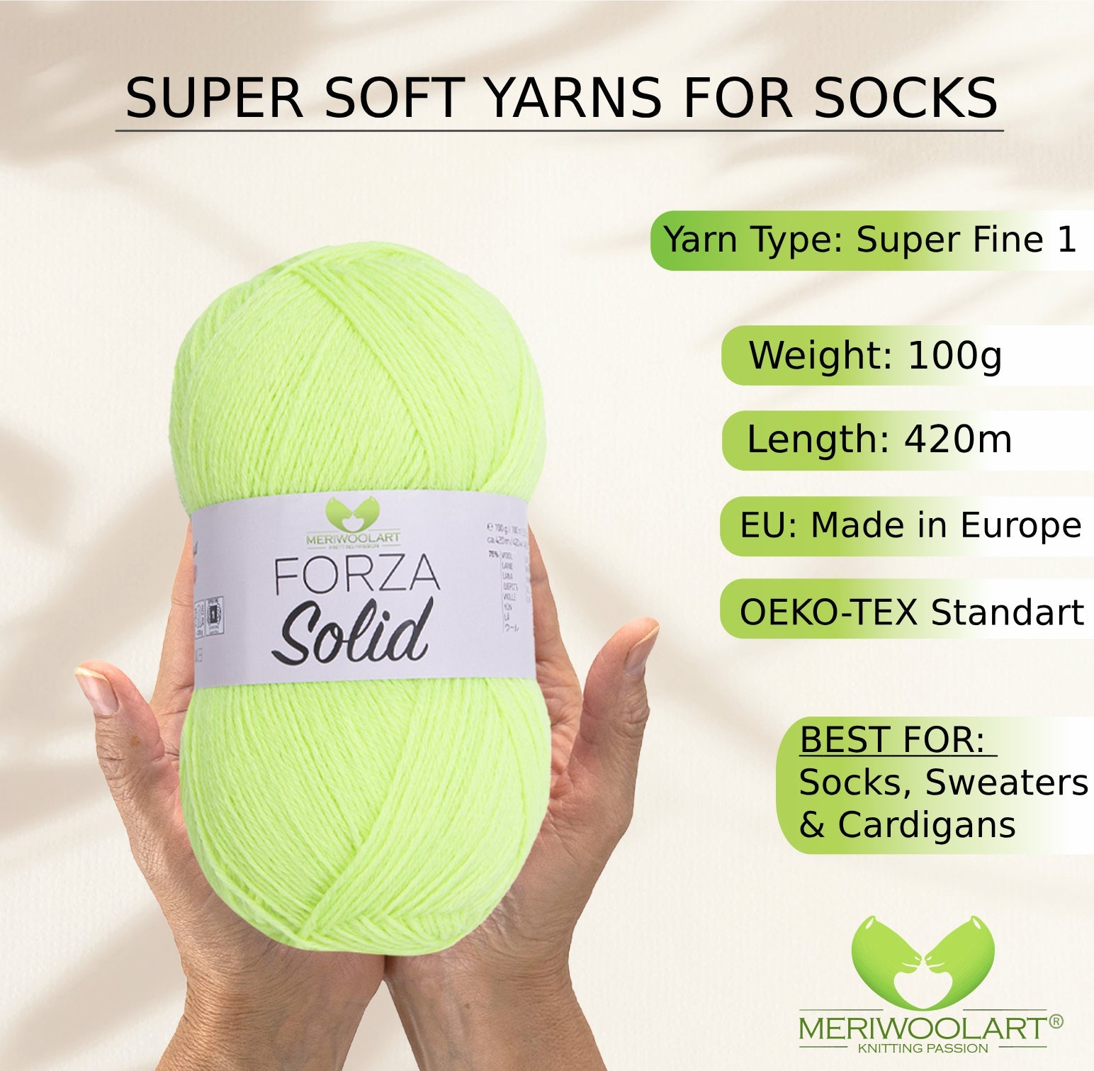 Discover MeriWoolArt® Sock Yarn 4-Ply – 100g Merino Wool Yarn for Knitting & Crocheting, 75% Virgin Wool (Superwash), 25% Polyamide, 420m – Ideal for Socks for Men & Women, Sweaters & Cardigans