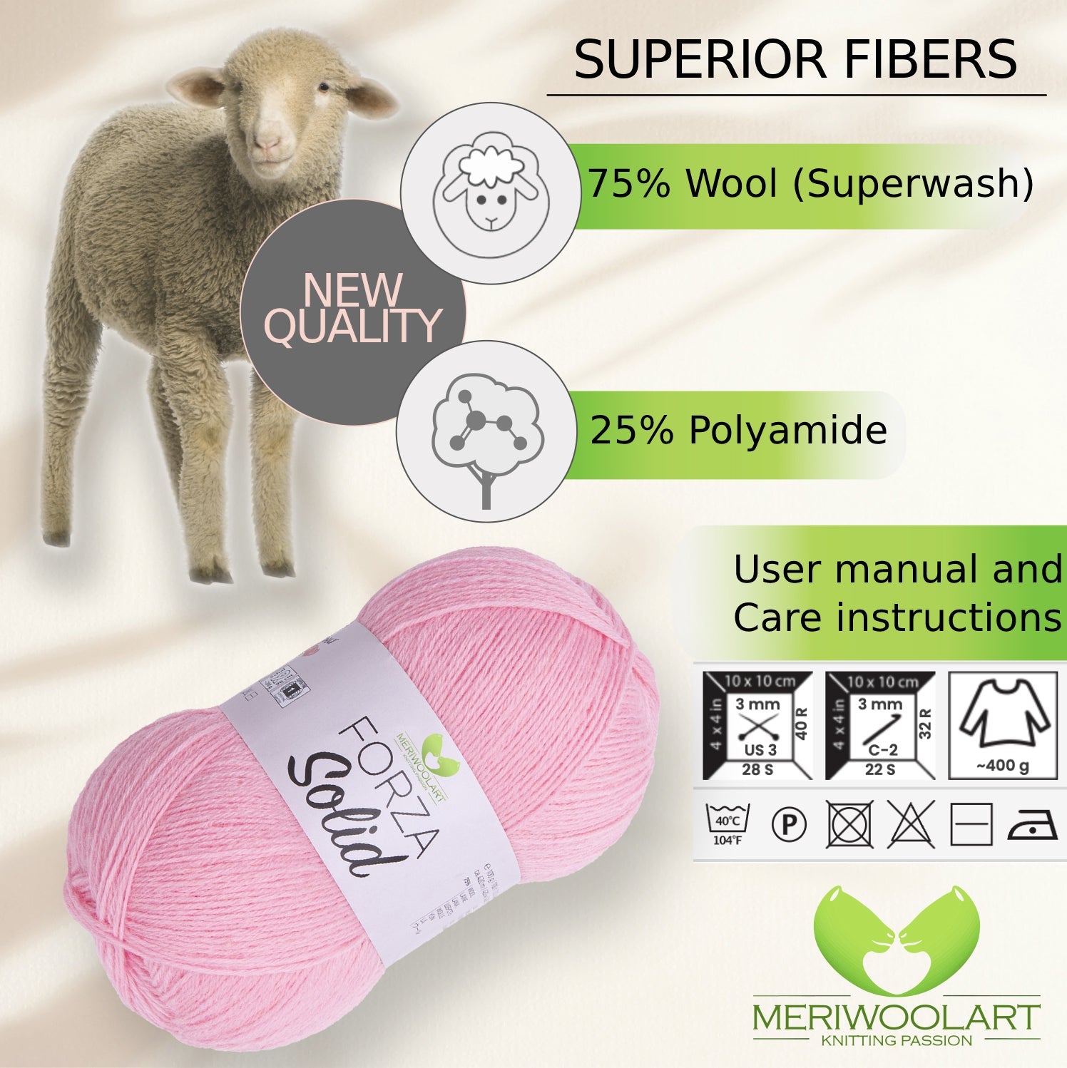 Discover MeriWoolArt® Sock Yarn 4-Ply – 100g Merino Wool Yarn for Knitting & Crocheting, 75% Virgin Wool (Superwash), 25% Polyamide, 420m – Ideal for Socks for Men & Women, Sweaters & Cardigans