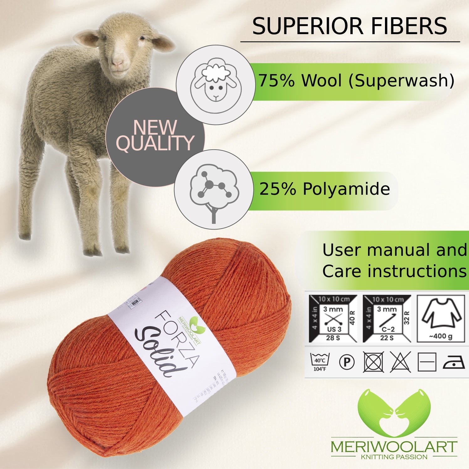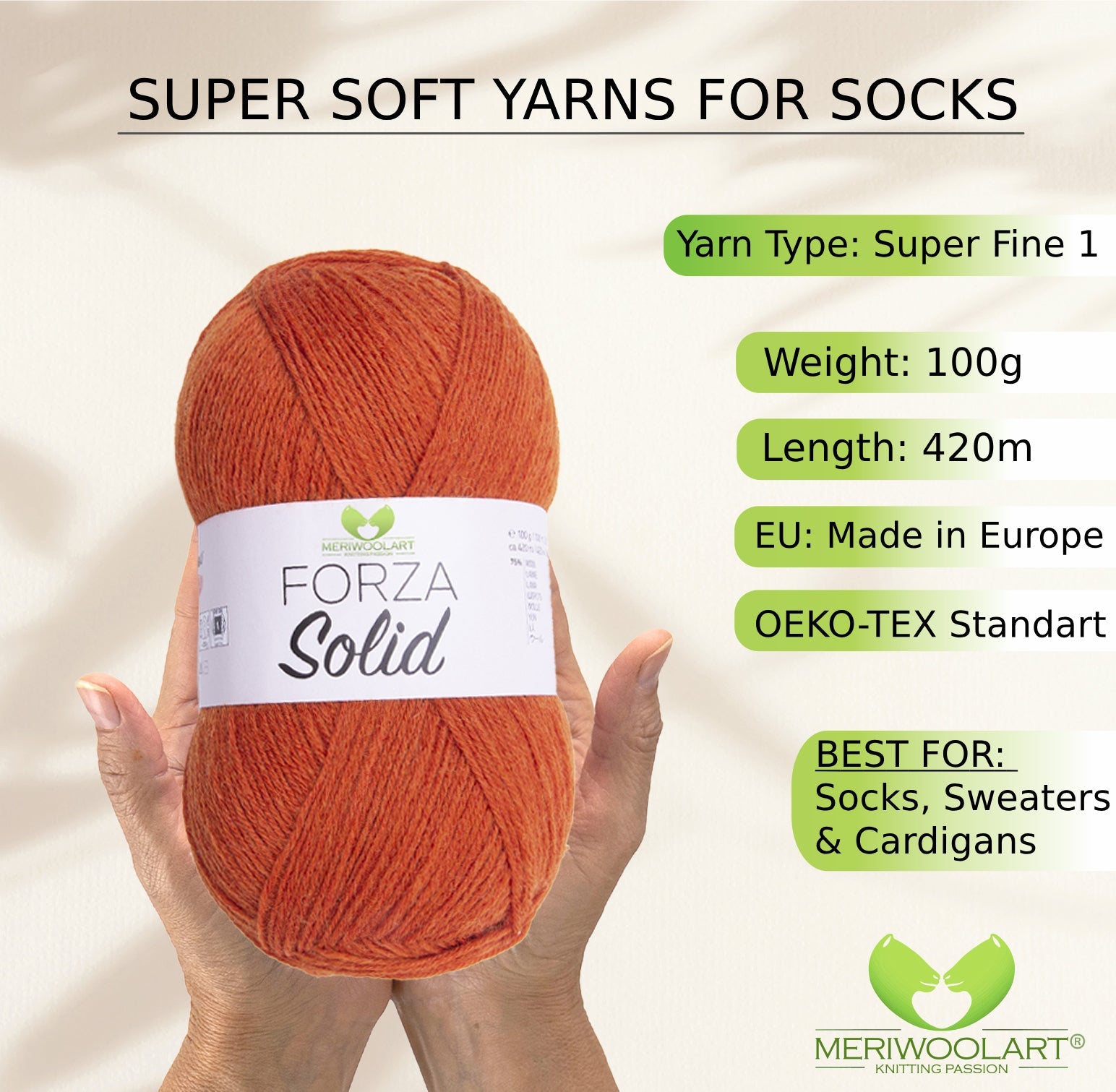 Discover MeriWoolArt® Sock Yarn 4-Ply – 100g Merino Wool Yarn for Knitting & Crocheting, 75% Virgin Wool (Superwash), 25% Polyamide, 420m – Ideal for Socks for Men & Women, Sweaters & Cardigans