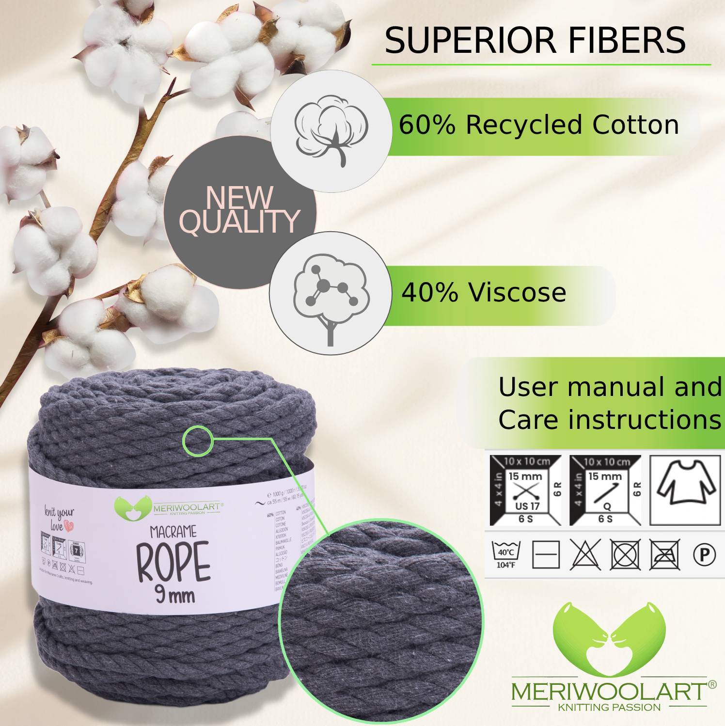🌟 High-Quality Macramé Rope: Made from recycled cotton with durable viscose to prevent fraying; easy to handle and gentle on hands.