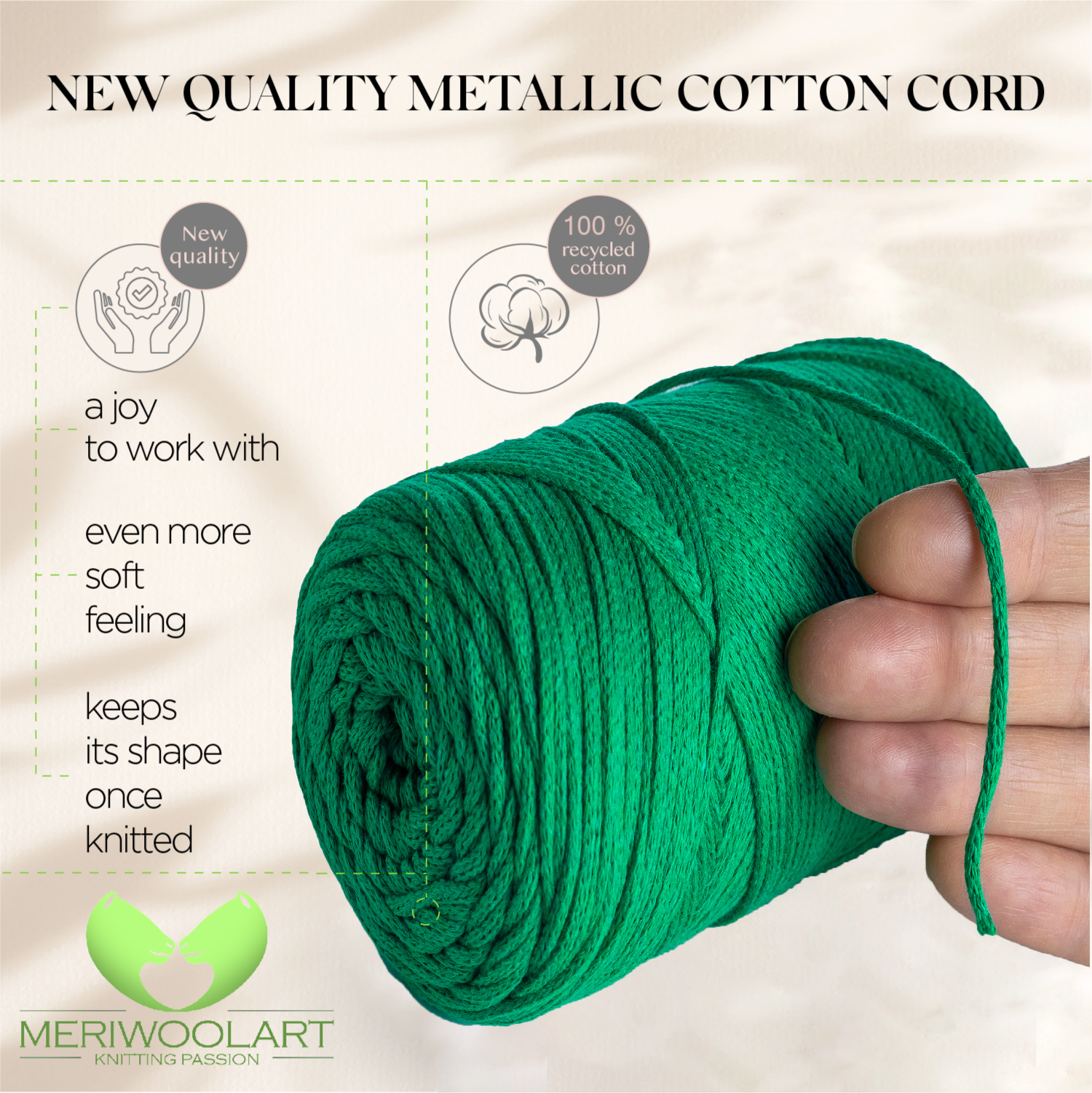 - MeriWoolArt is the only brand to offer a recycled cotton yarn spool with a recycled paper core.