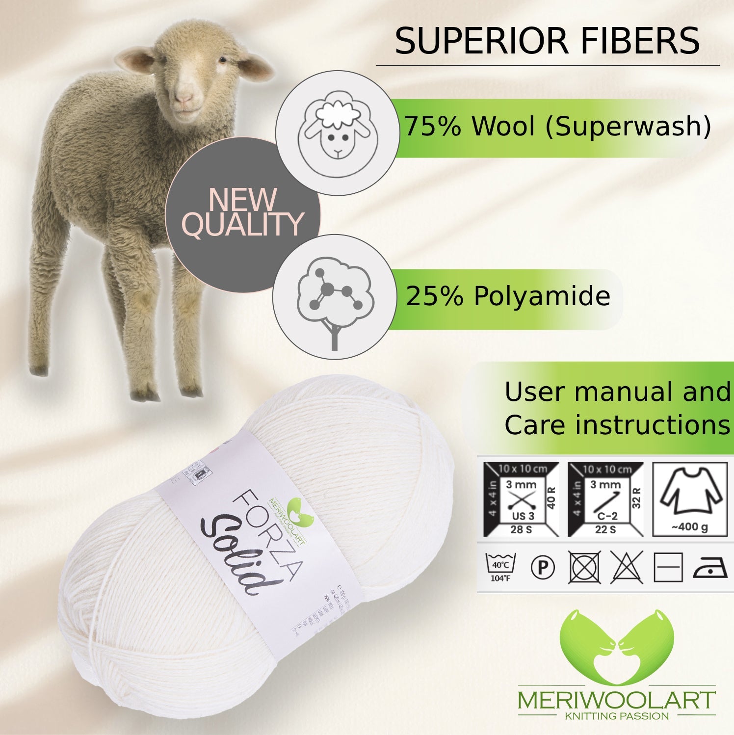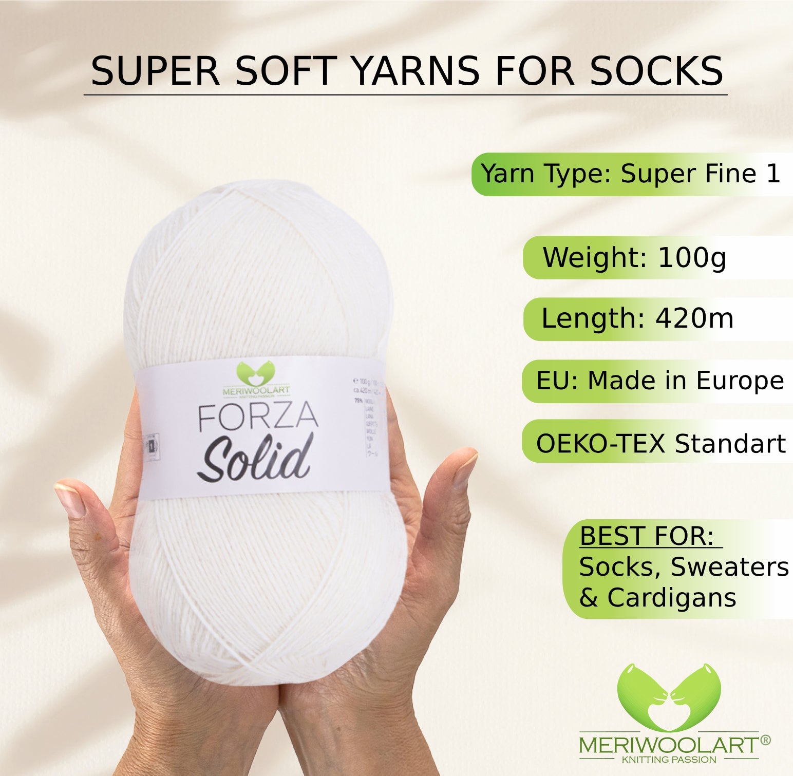 FORZA SOLID White WOOL SOCK YARNS 100g 420m