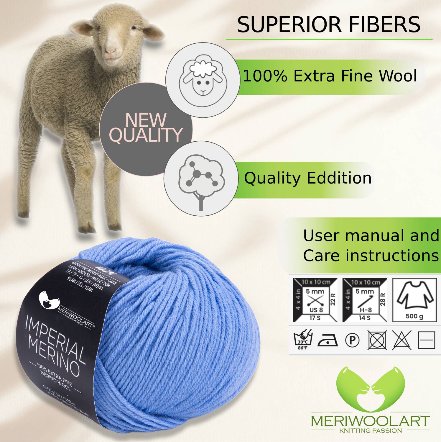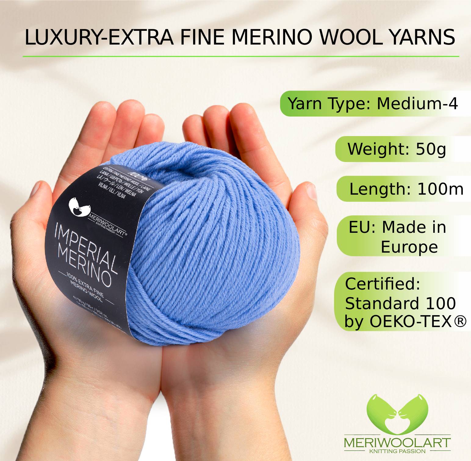 IMPERIAL Blue MERINO WOOL YARNS 50g 125m