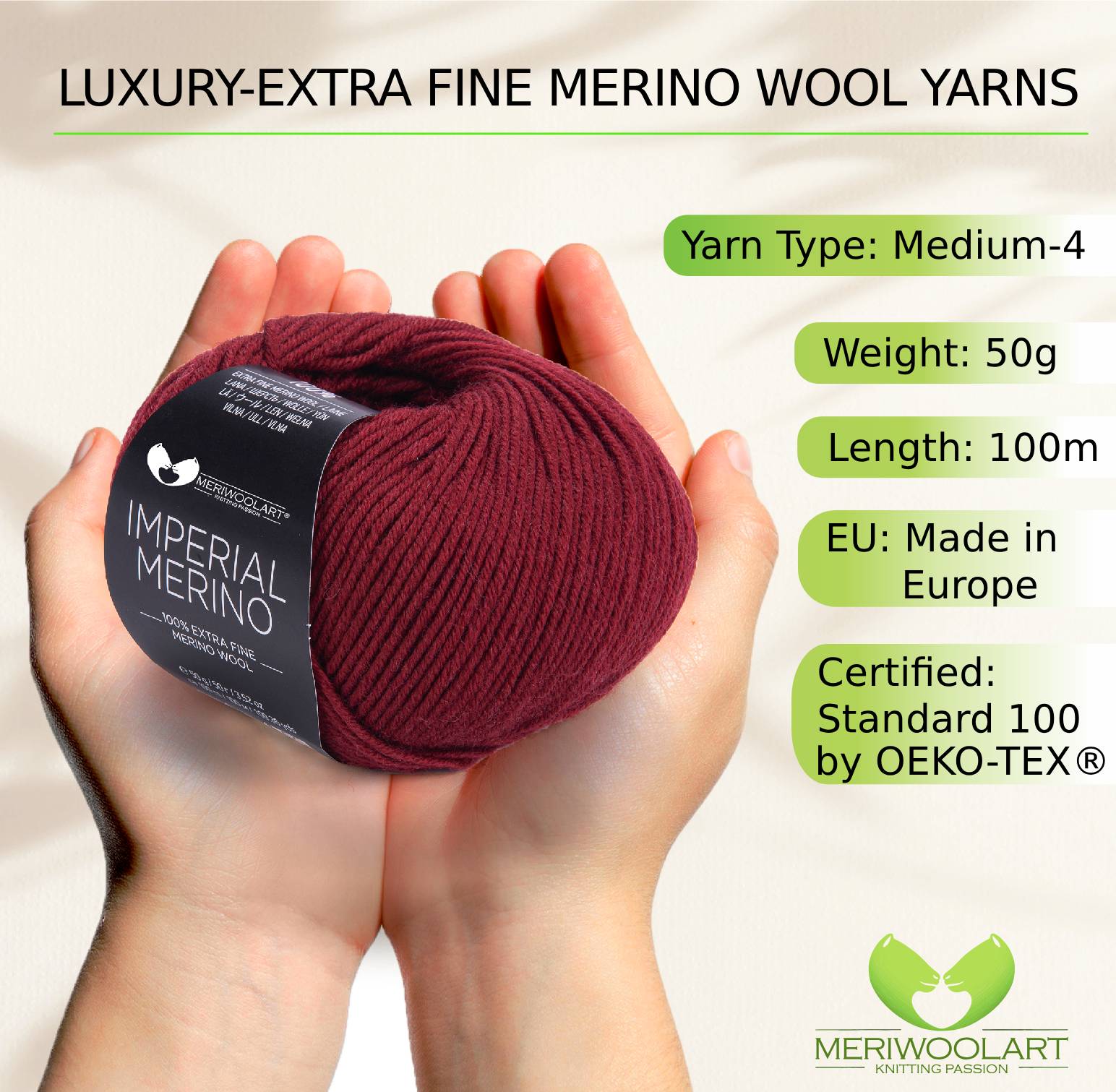 IMPERIAL Burgundy MERINO WOOL YARNS 50g 125m