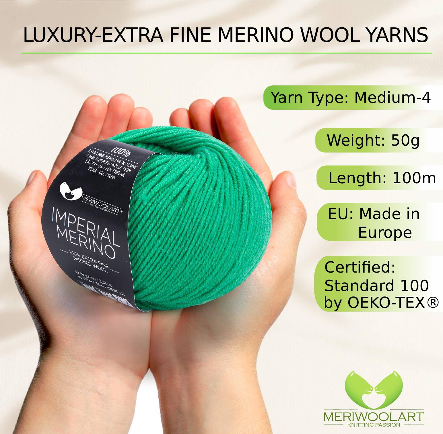 IMPERIAL Green MERINO WOOL YARNS 50g 125m