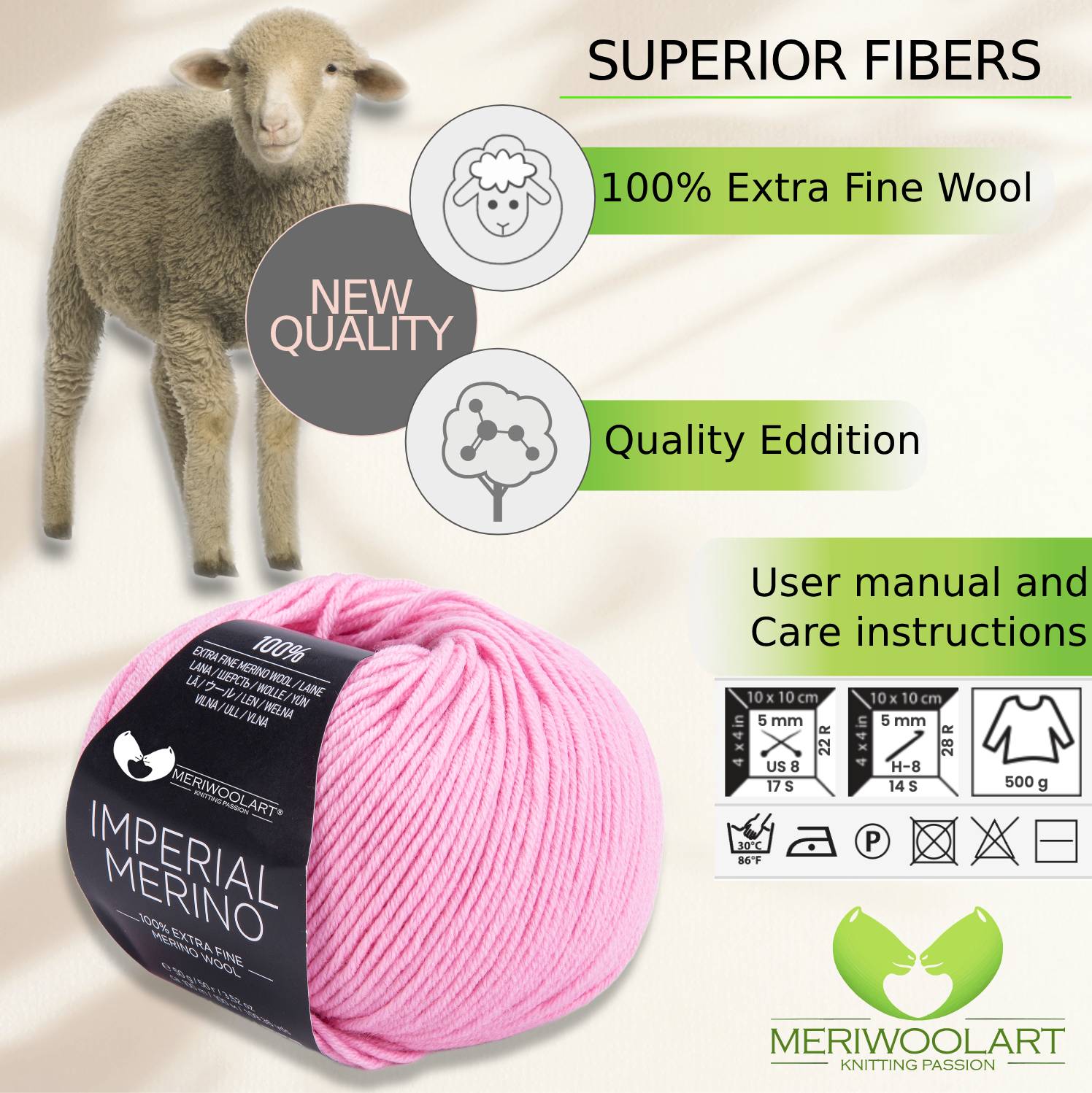 IMPERIAL Pink MERINO WOOL YARNS 50g 125m