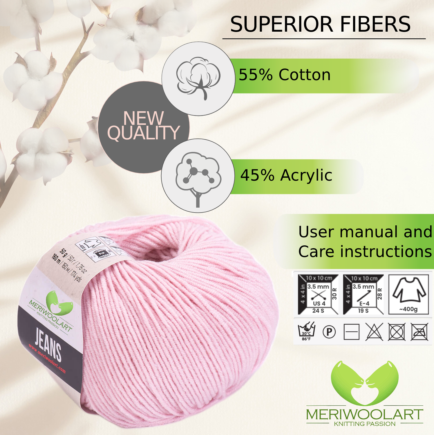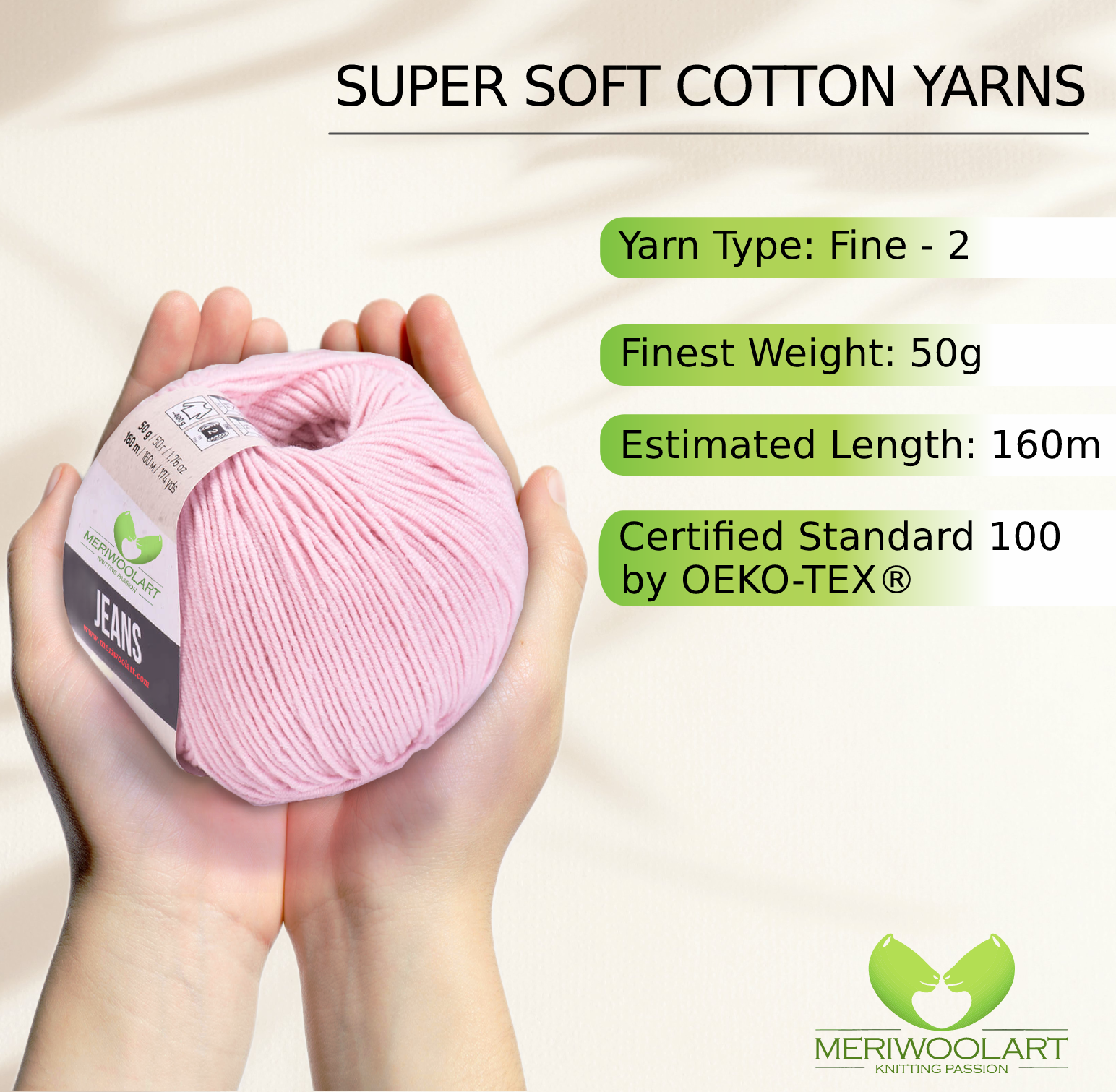 Experience the softness and versatility of MeriWoolArt® Natural Cotton Yarn, perfect for knitting, crocheting, and crafting baby clothes, blankets, and accessories.
