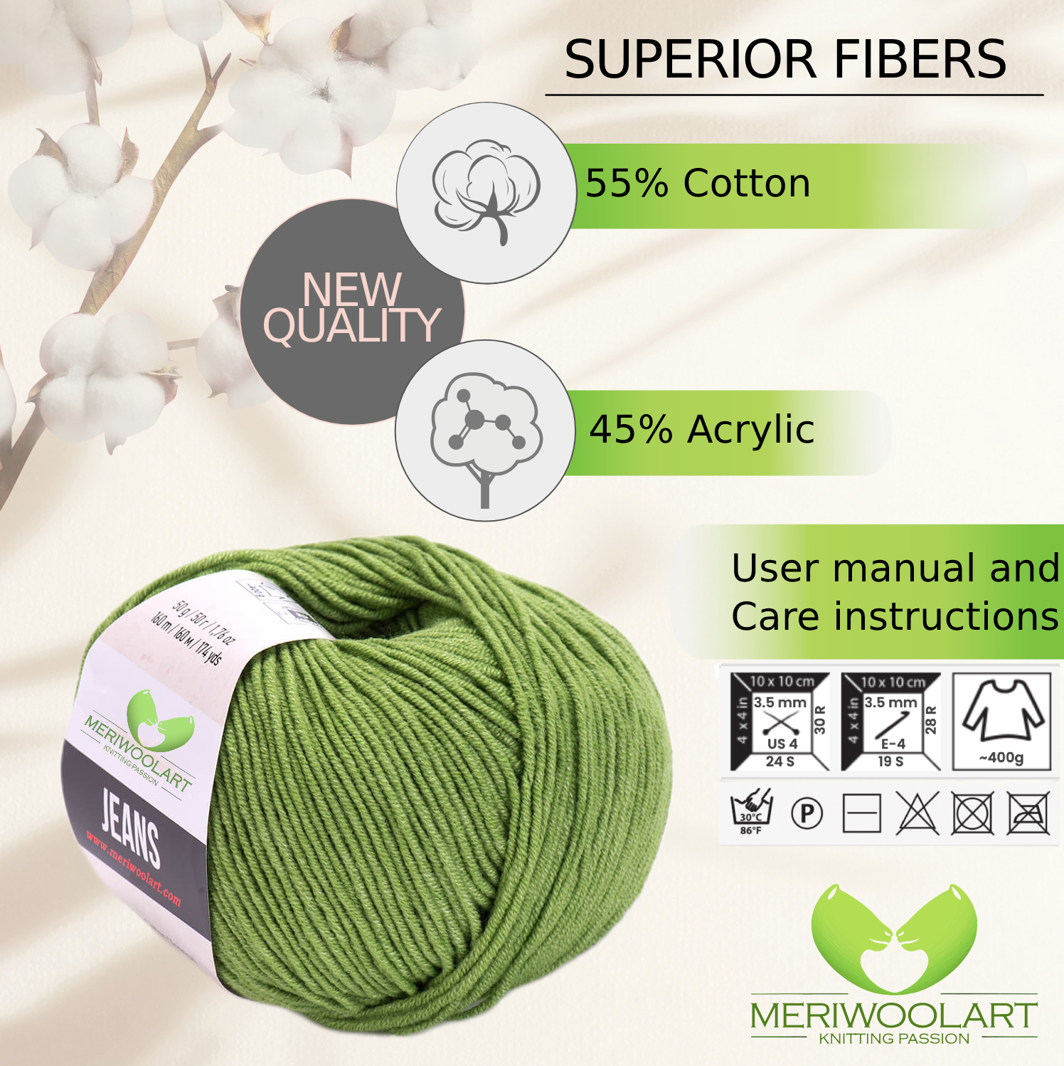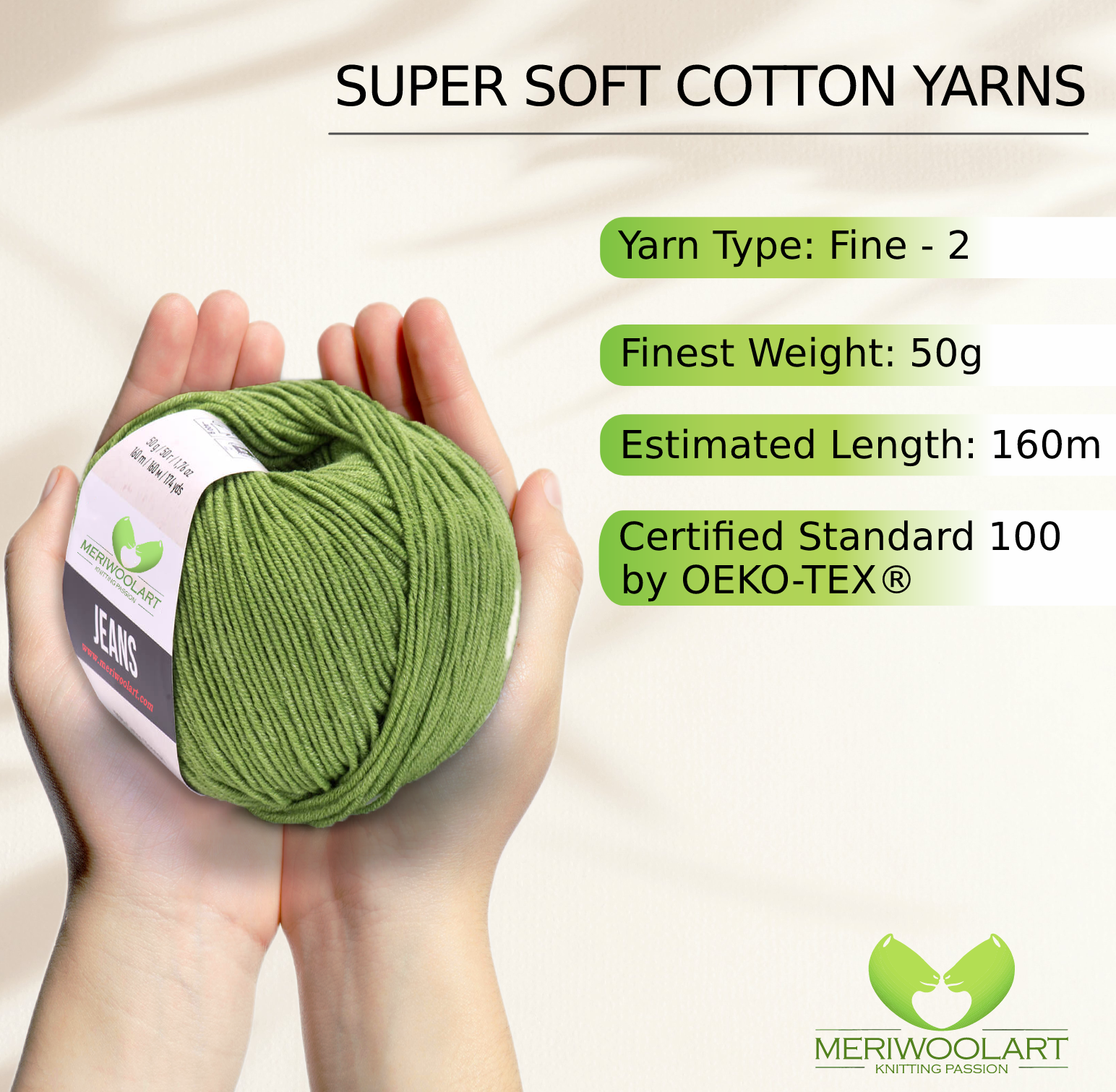 Experience the softness and versatility of MeriWoolArt® Natural Cotton Yarn, perfect for knitting, crocheting, and crafting baby clothes, blankets, and accessories.