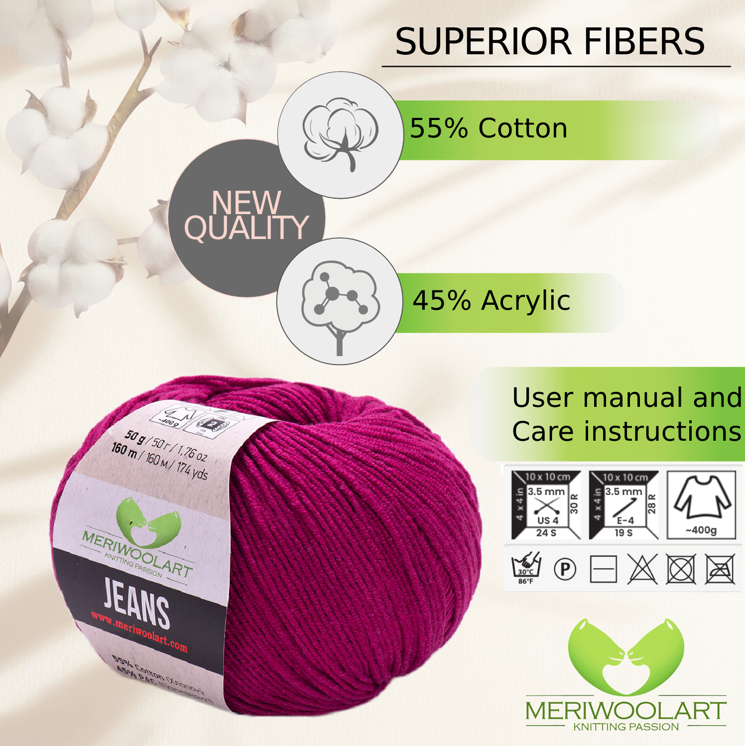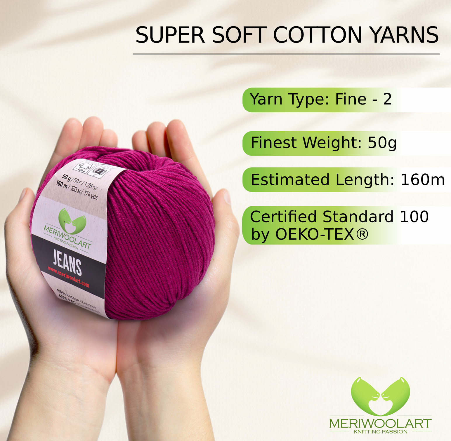 Experience the softness and versatility of MeriWoolArt® Natural Cotton Yarn, perfect for knitting, crocheting, and crafting baby clothes, blankets, and accessories.
