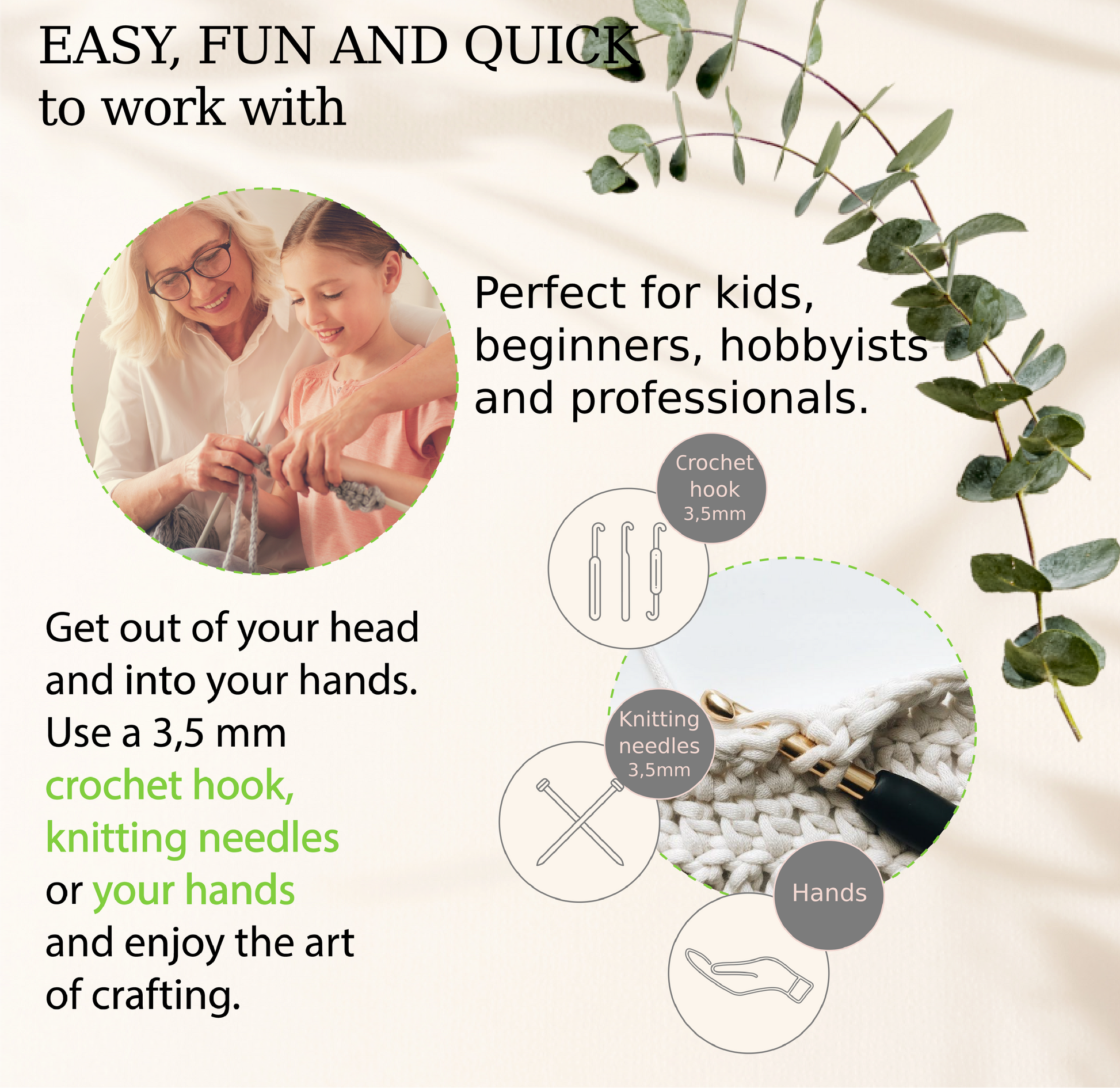 ✨ Versatile Use: Lightweight and easy to work with, perfect for knitting, arm knitting, macramé, and crochet projects.