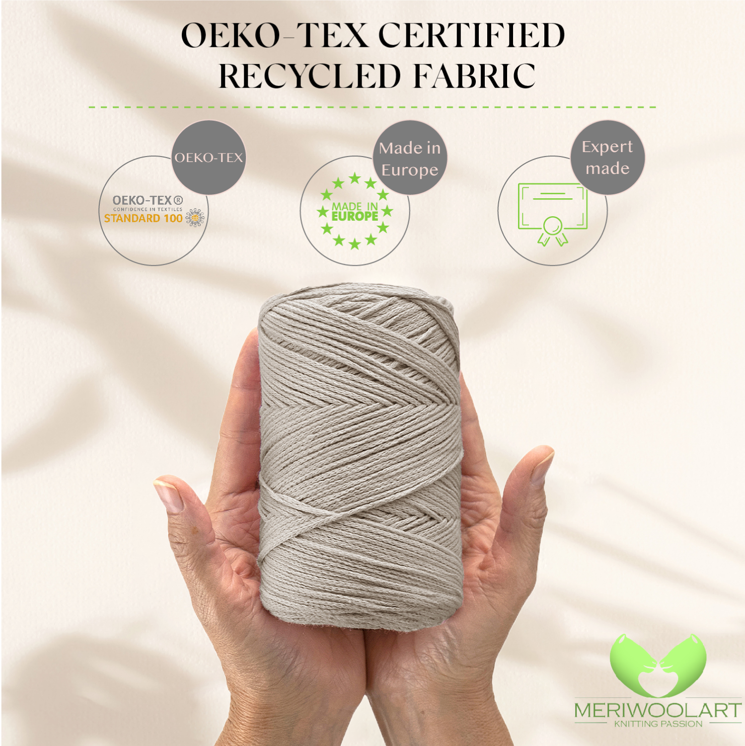 Our macramé cord 2mm - 250m is made from the highest quality recycled cotton rope.