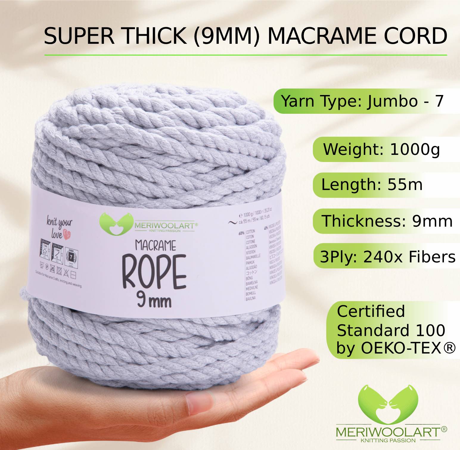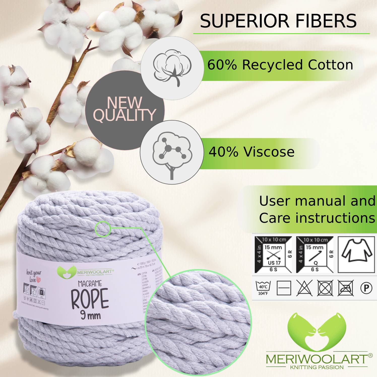🌟 High-Quality Macramé Rope: Made from recycled cotton with durable viscose to prevent fraying; easy to handle and gentle on hands.