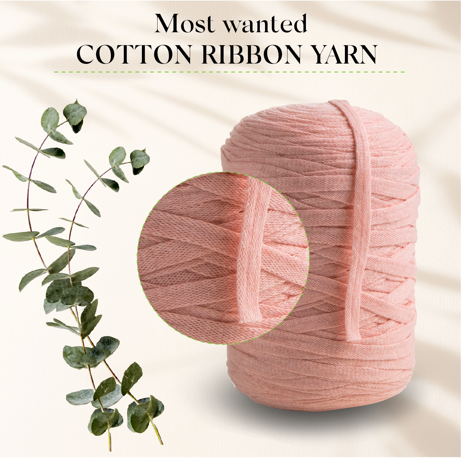 Enjoy macramé craft with fray-resistant, strong yet soft cotton ribbon yarn.