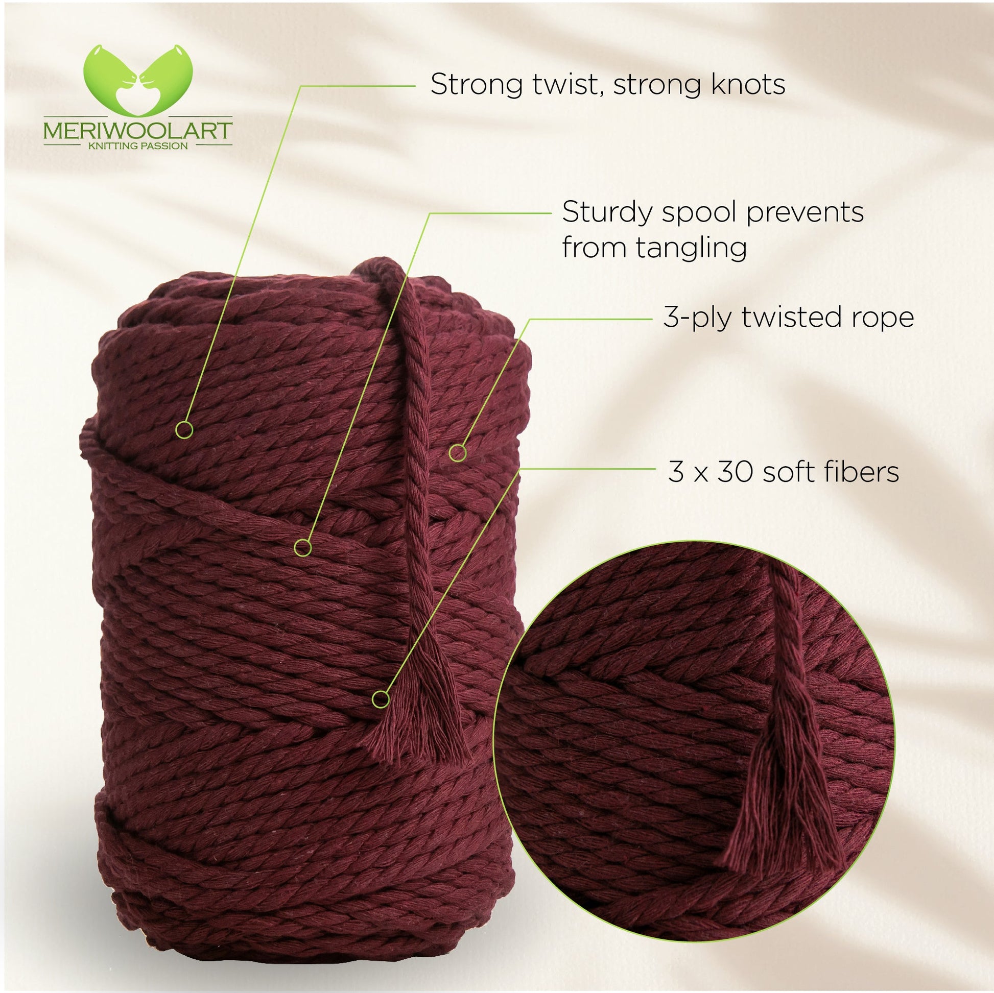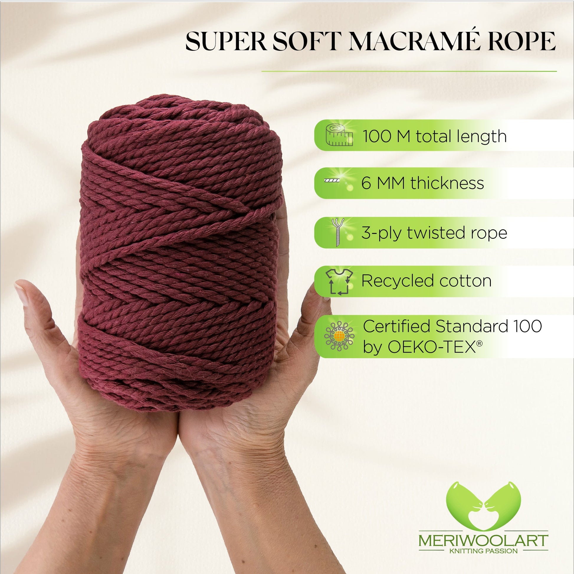 BURGUNDY MACRAMÉ ROPE 6 MM, 100 M