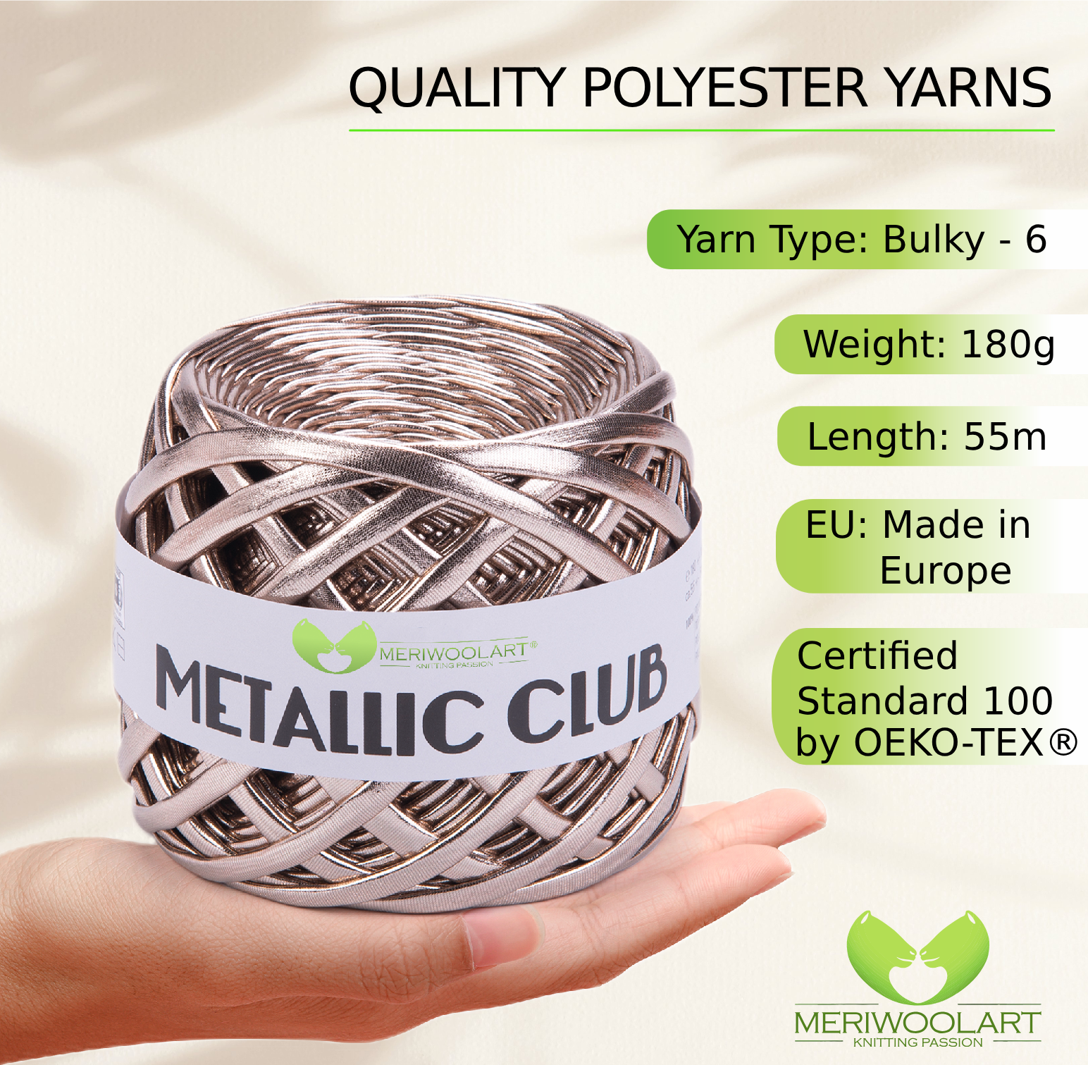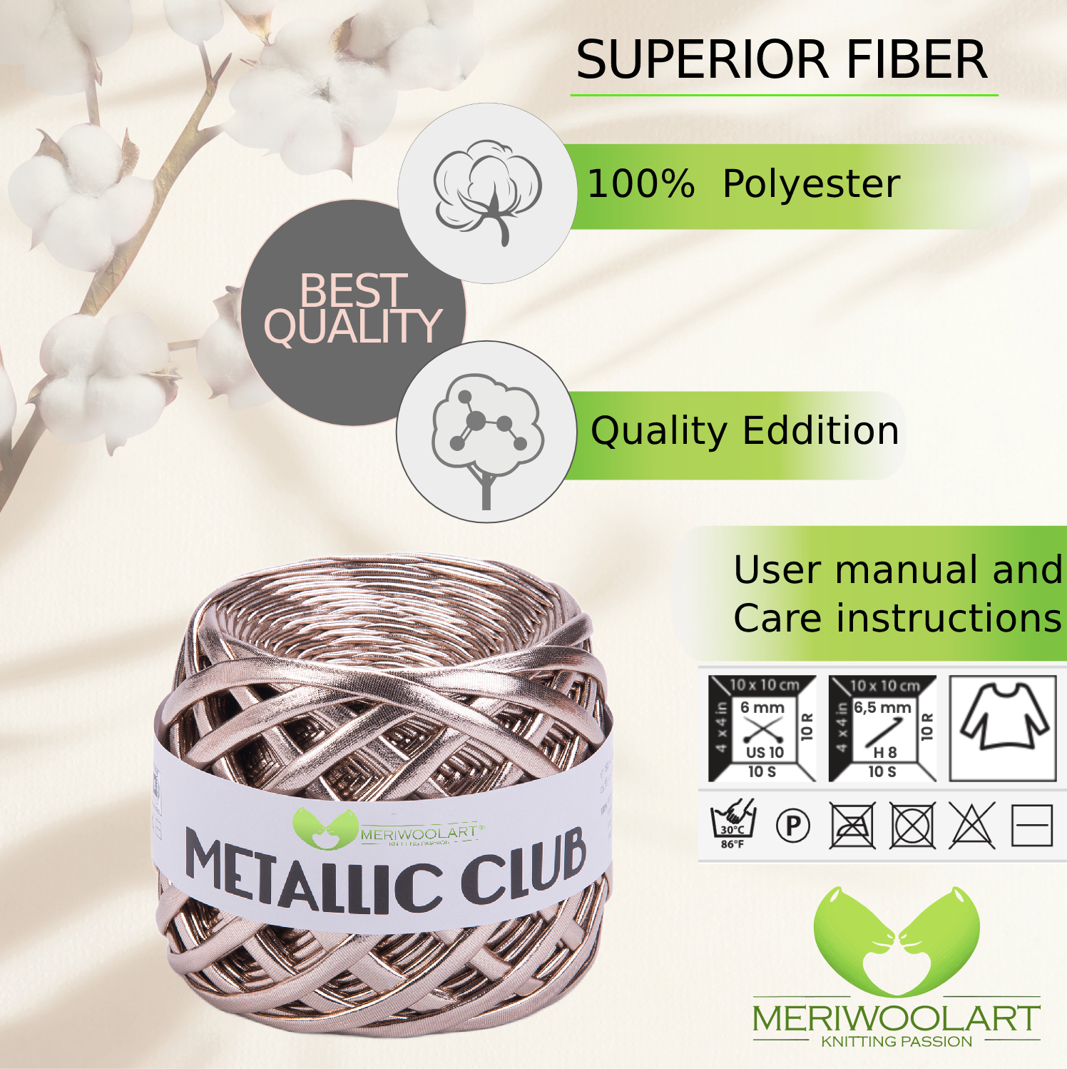 Experience the luxurious feel of MeriWoolArt® Premium Metallic T-Shirt Yarn, perfect for knitting, crocheting, and creating stylish accessories.