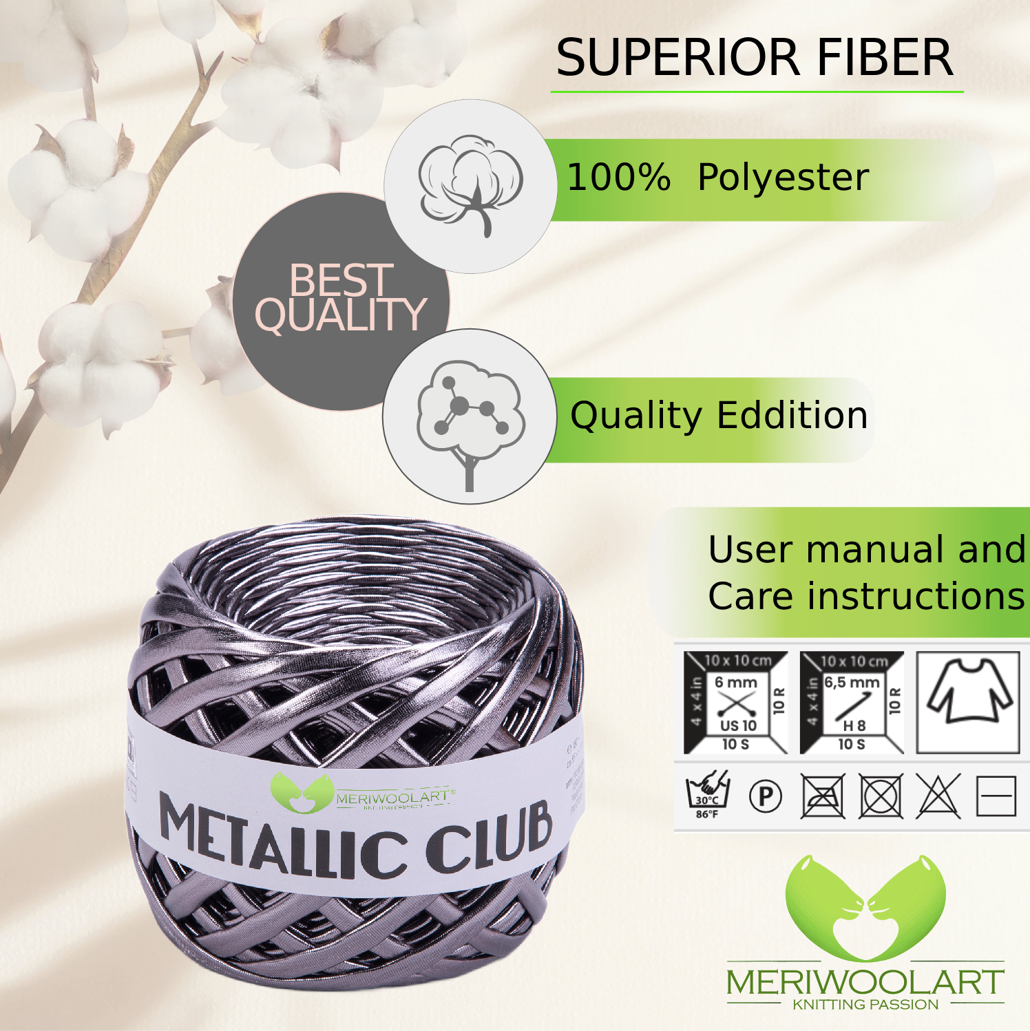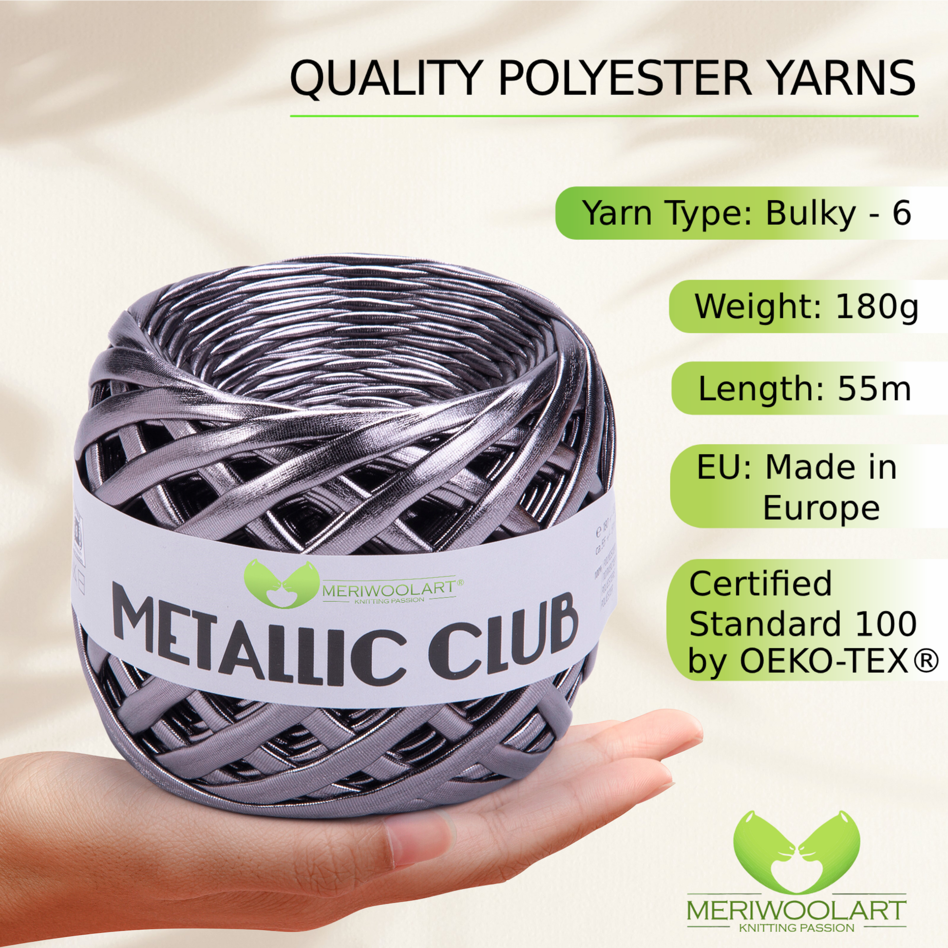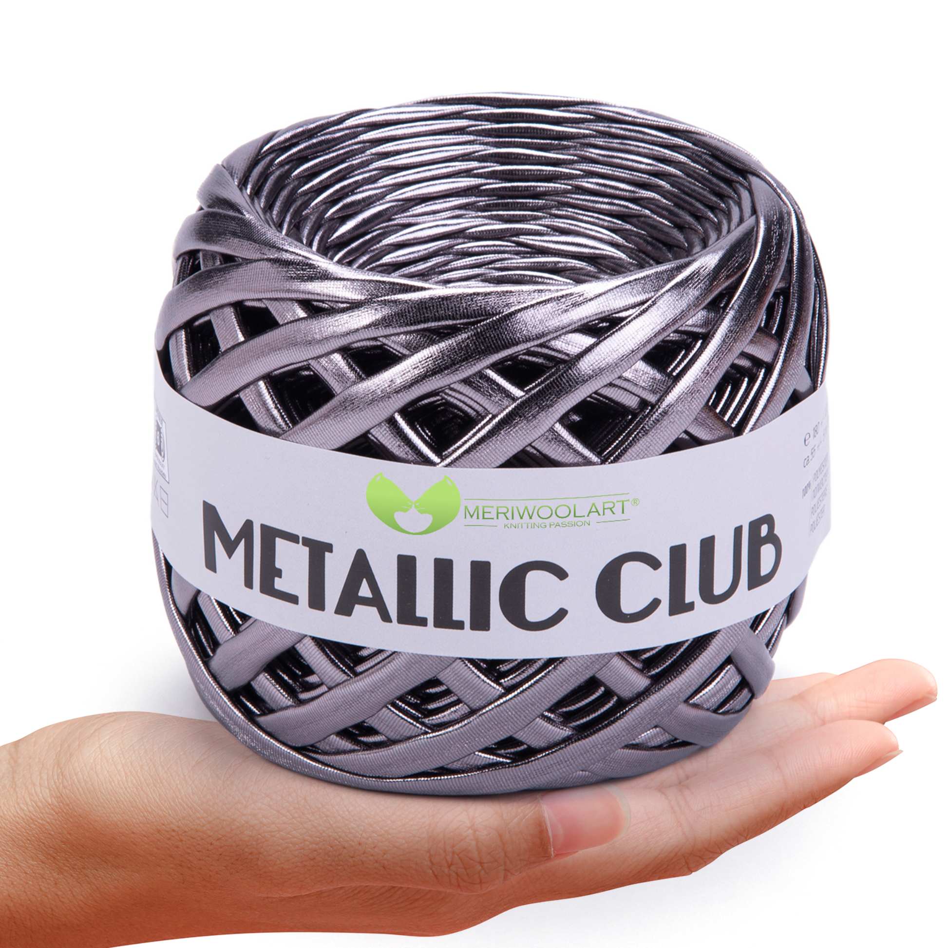 Experience the luxurious feel of MeriWoolArt® Premium Metallic T-Shirt Yarn, perfect for knitting, crocheting, and creating stylish accessories.
