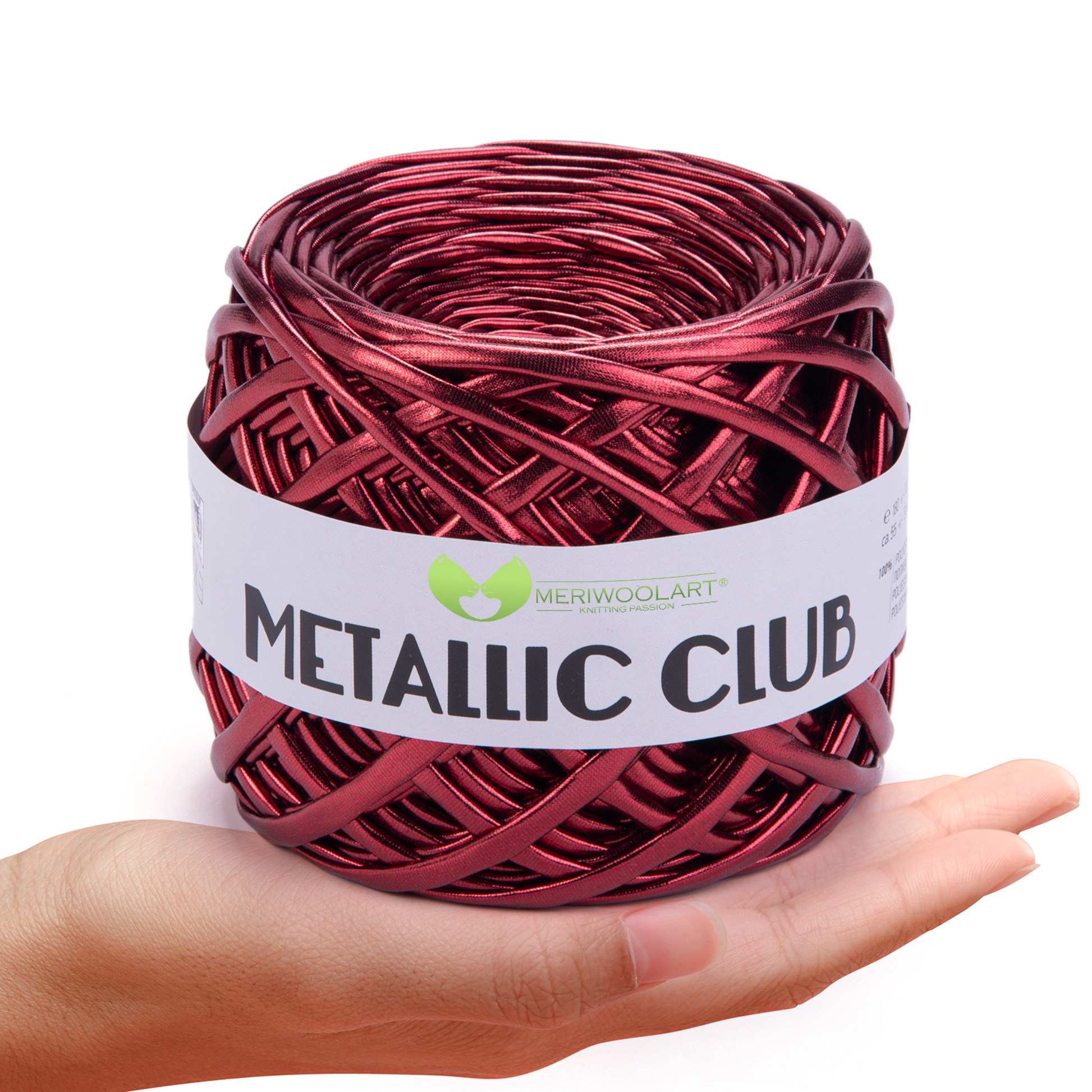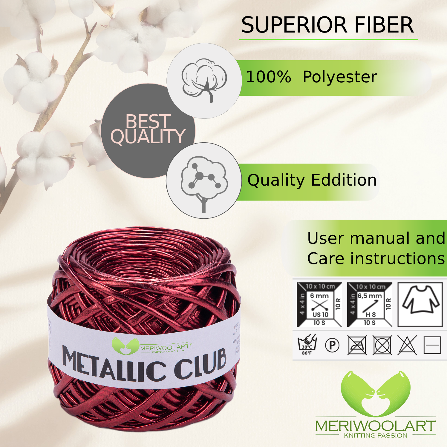 Experience the luxurious feel of MeriWoolArt® Premium Metallic T-Shirt Yarn, perfect for knitting, crocheting, and creating stylish accessories.