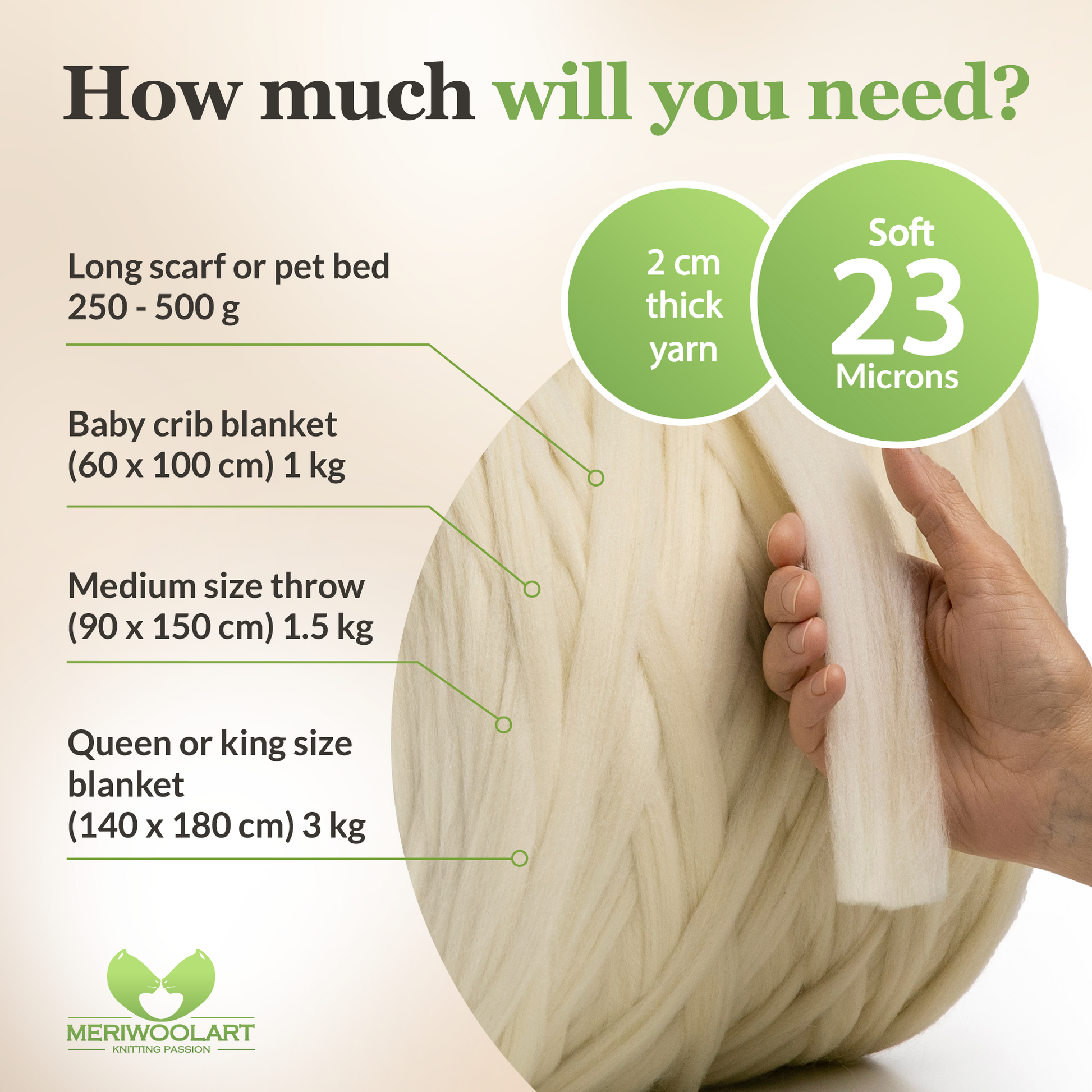 NATURAL CHUNKY MERINO WOOL 2 CM, 23 MICRON