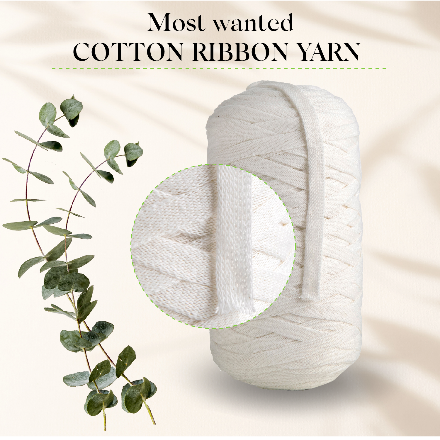 Enjoy macramé craft with fray-resistant, strong yet soft cotton ribbon yarn.