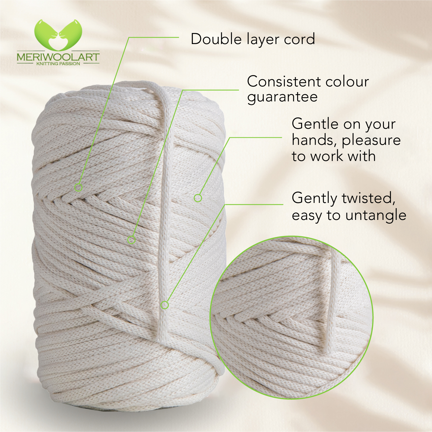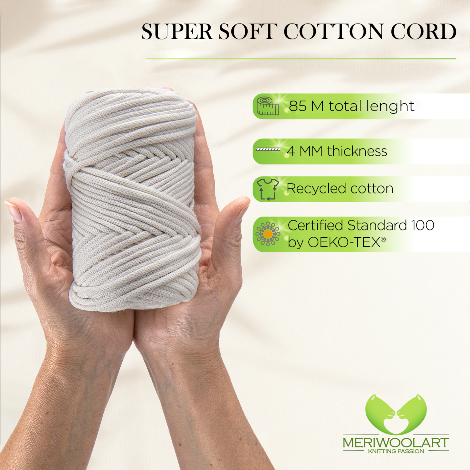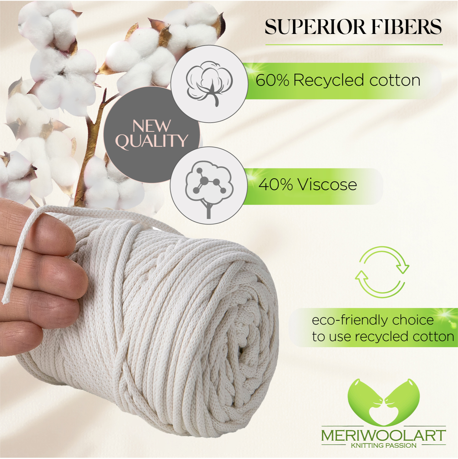 - Environmentally friendly thick cotton yarn for crochet and macramé knots of the highest quality.