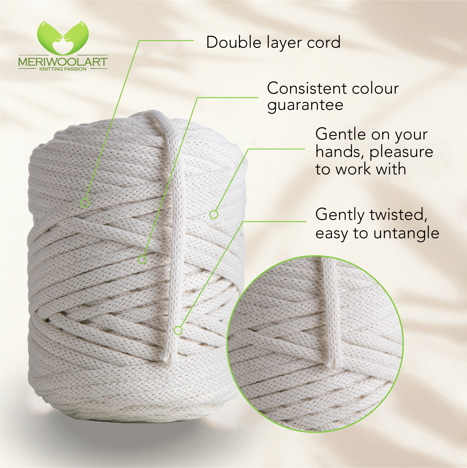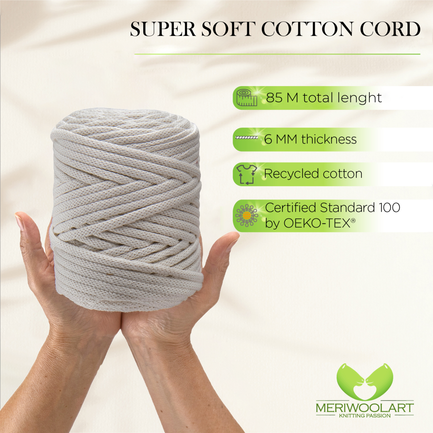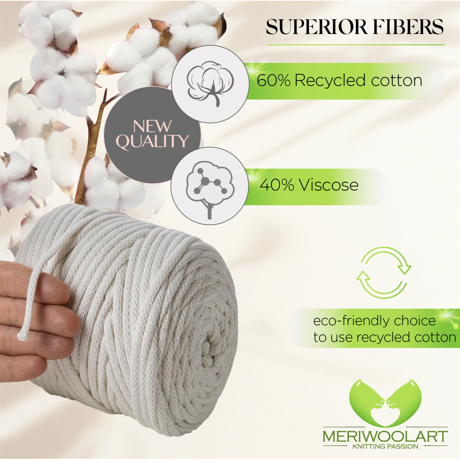 - Environmentally friendly thick cotton yarn for crochet and macramé knots of the highest quality.