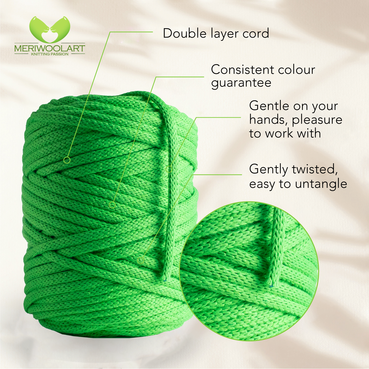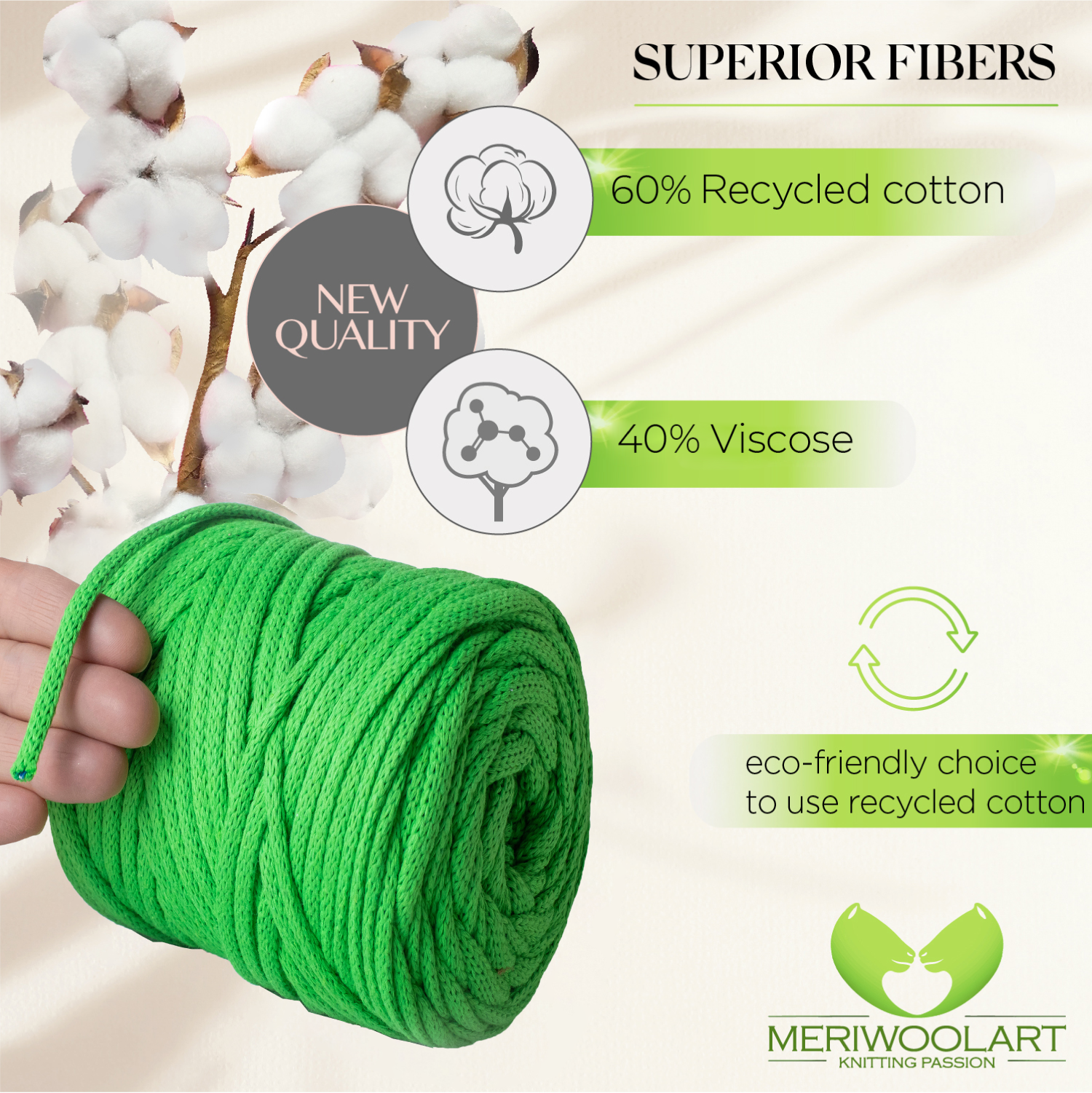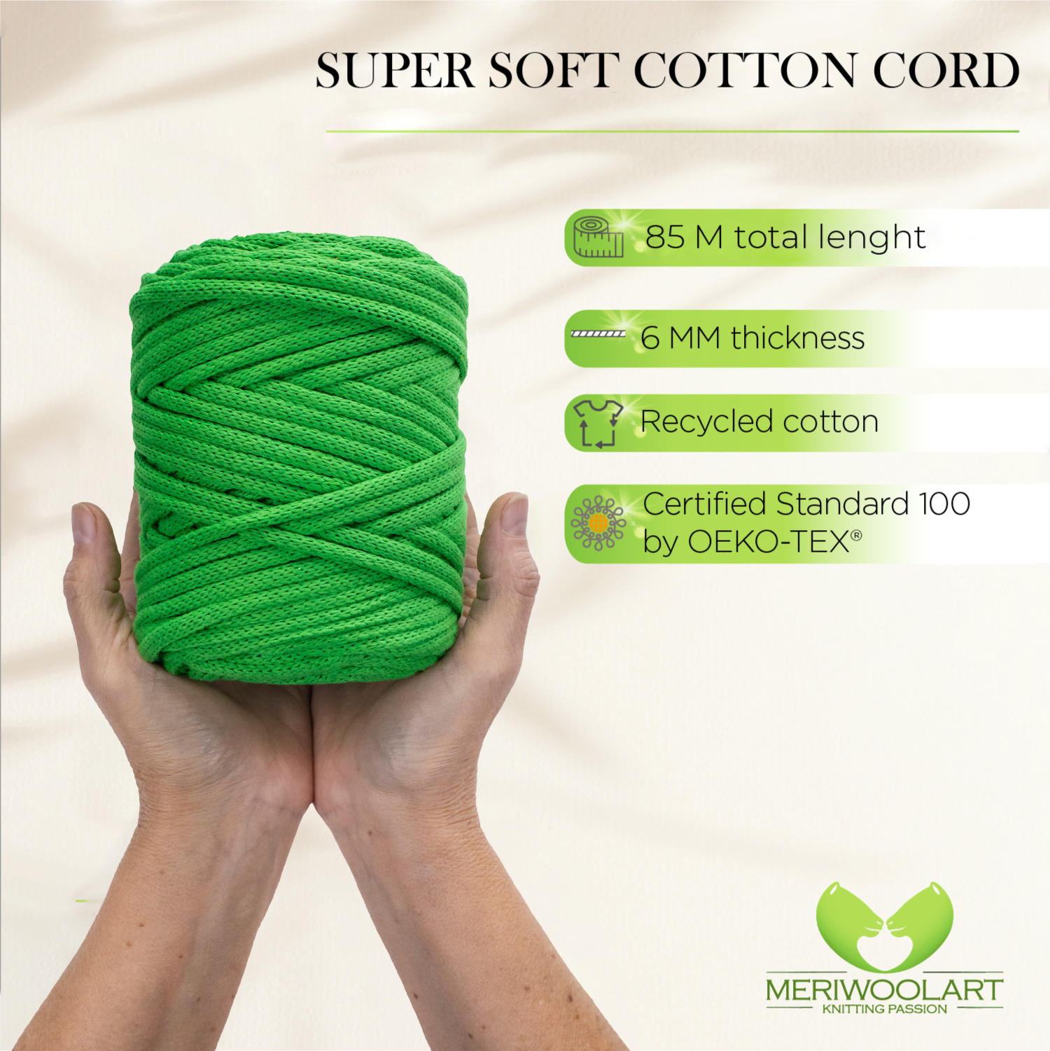 - Environmentally friendly thick cotton yarn for crochet and macramé knots of the highest quality.