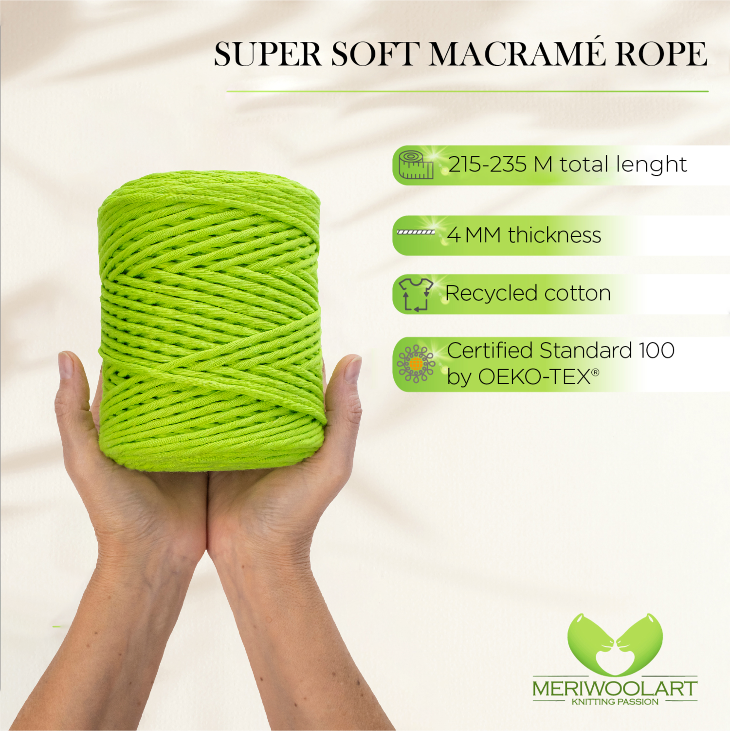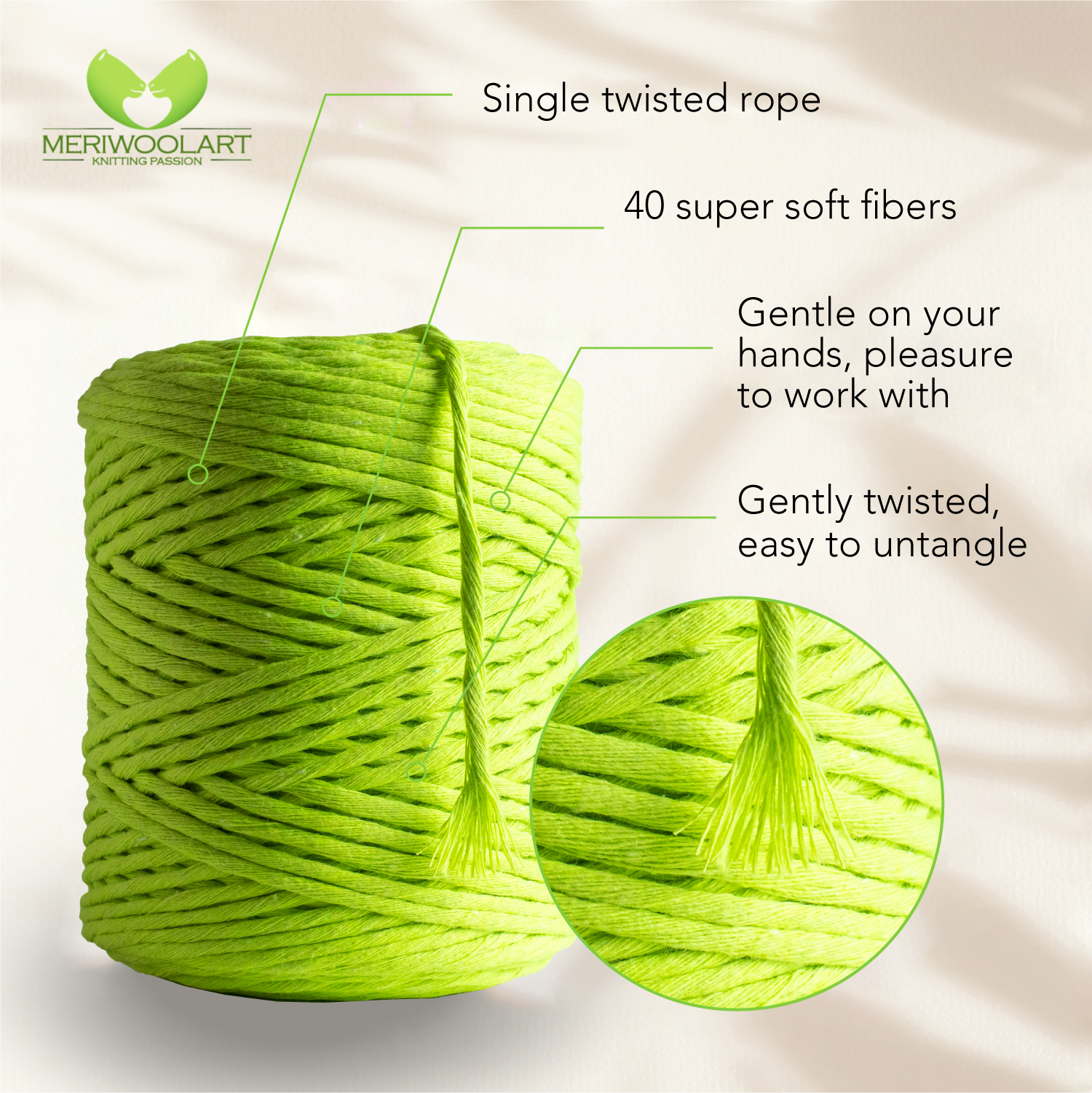 Enjoy macramé craft with fray-resistant, strong yet soft macramé rope.