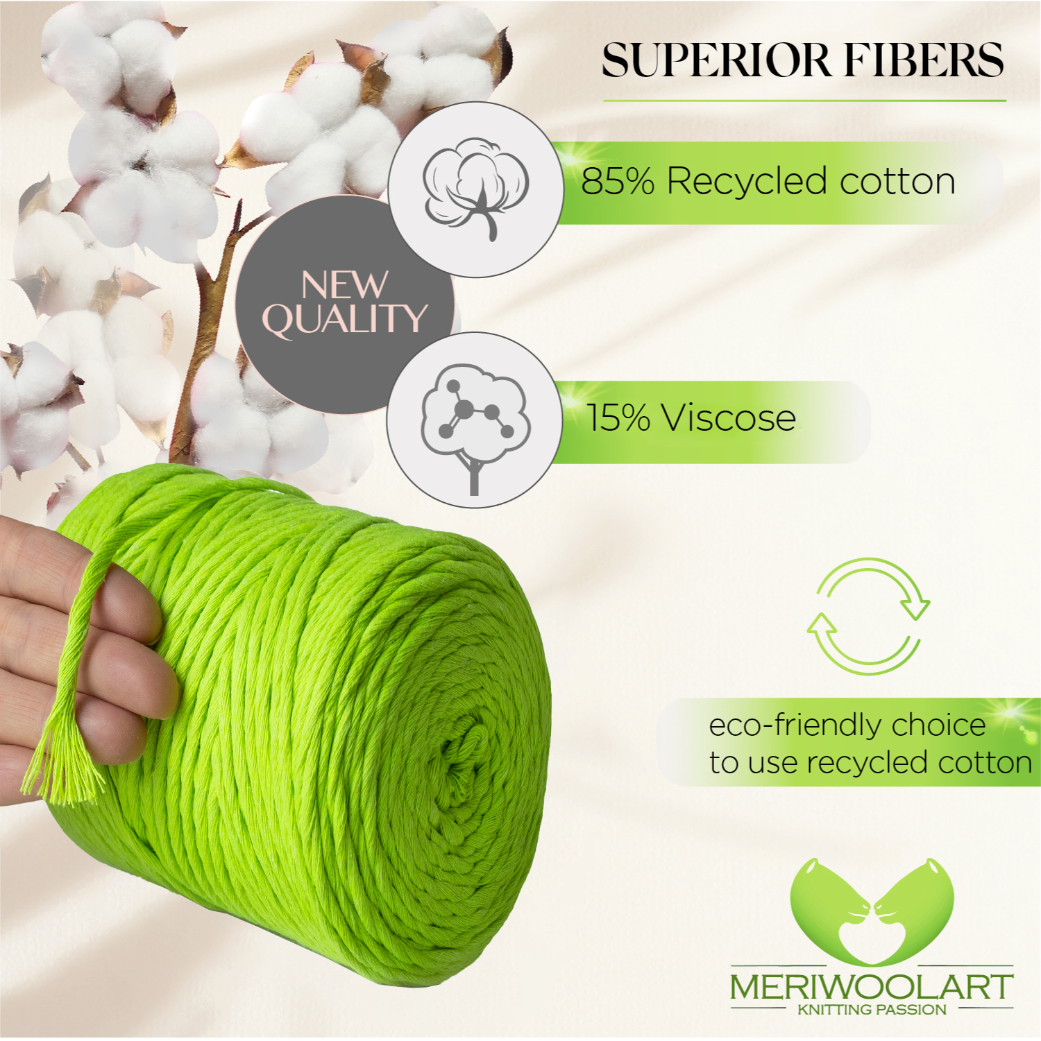 - Durable and gentle on your arms blend: 85% recycled cotton and 15% viscose.