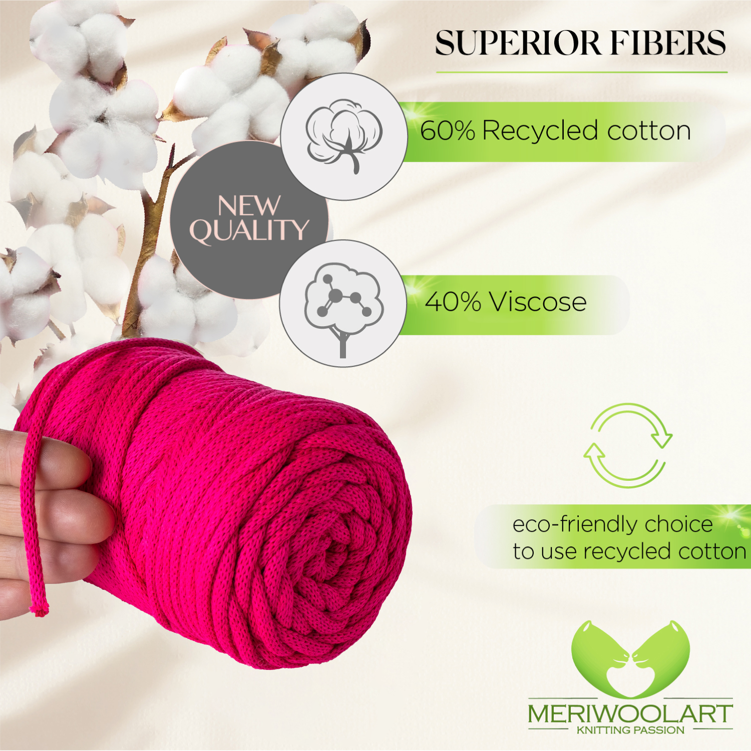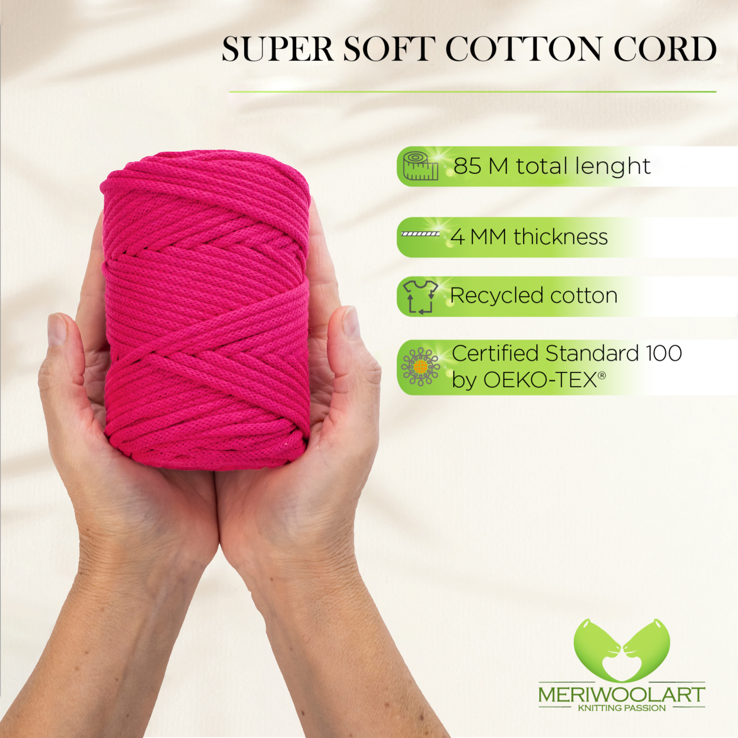 - Environmentally friendly thick cotton yarn for crochet and macramé knots of the highest quality.