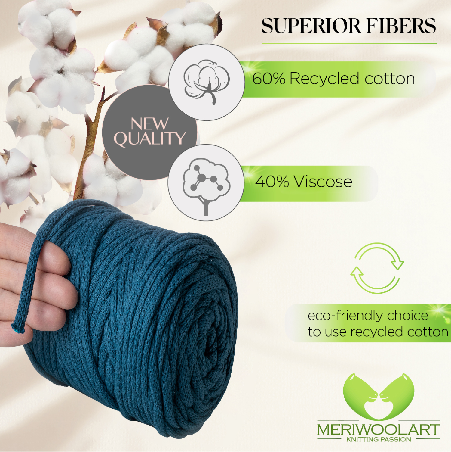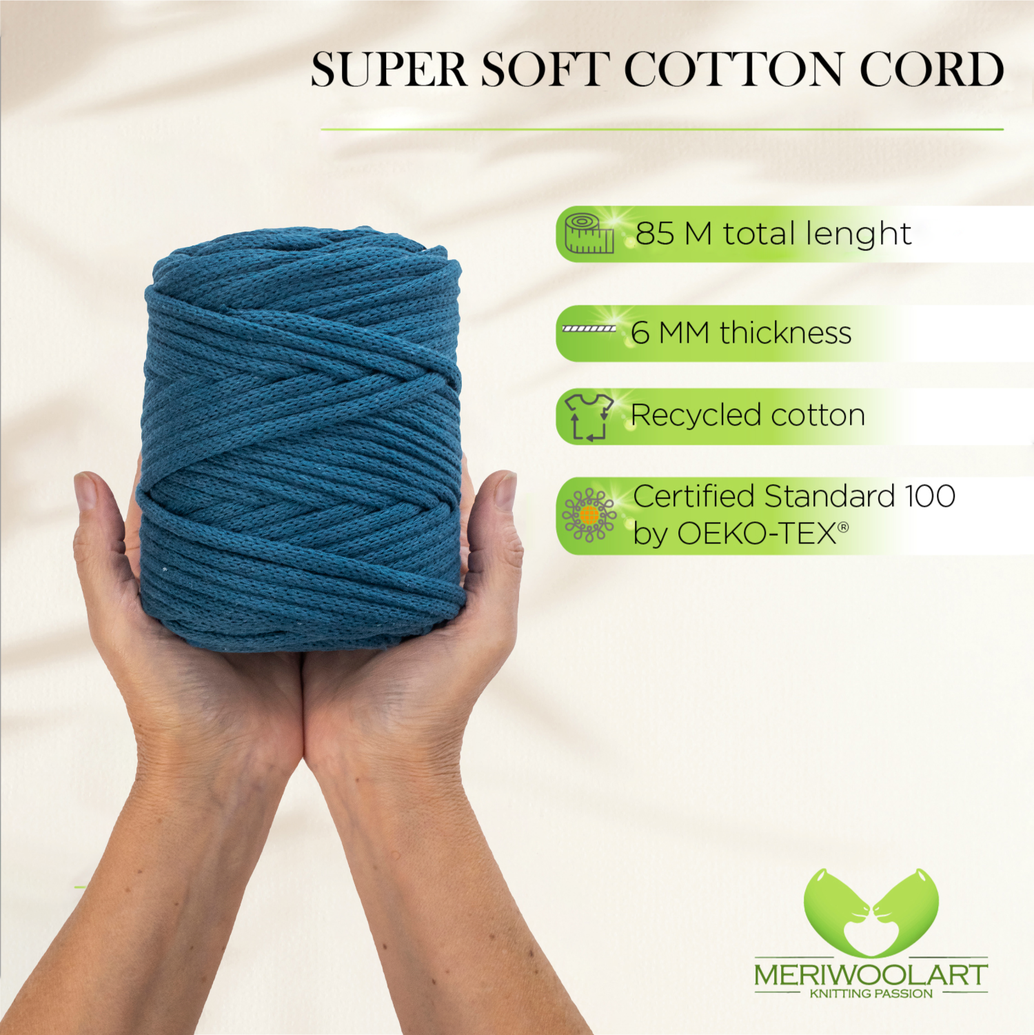 - Environmentally friendly thick cotton yarn for crochet and macramé knots of the highest quality.