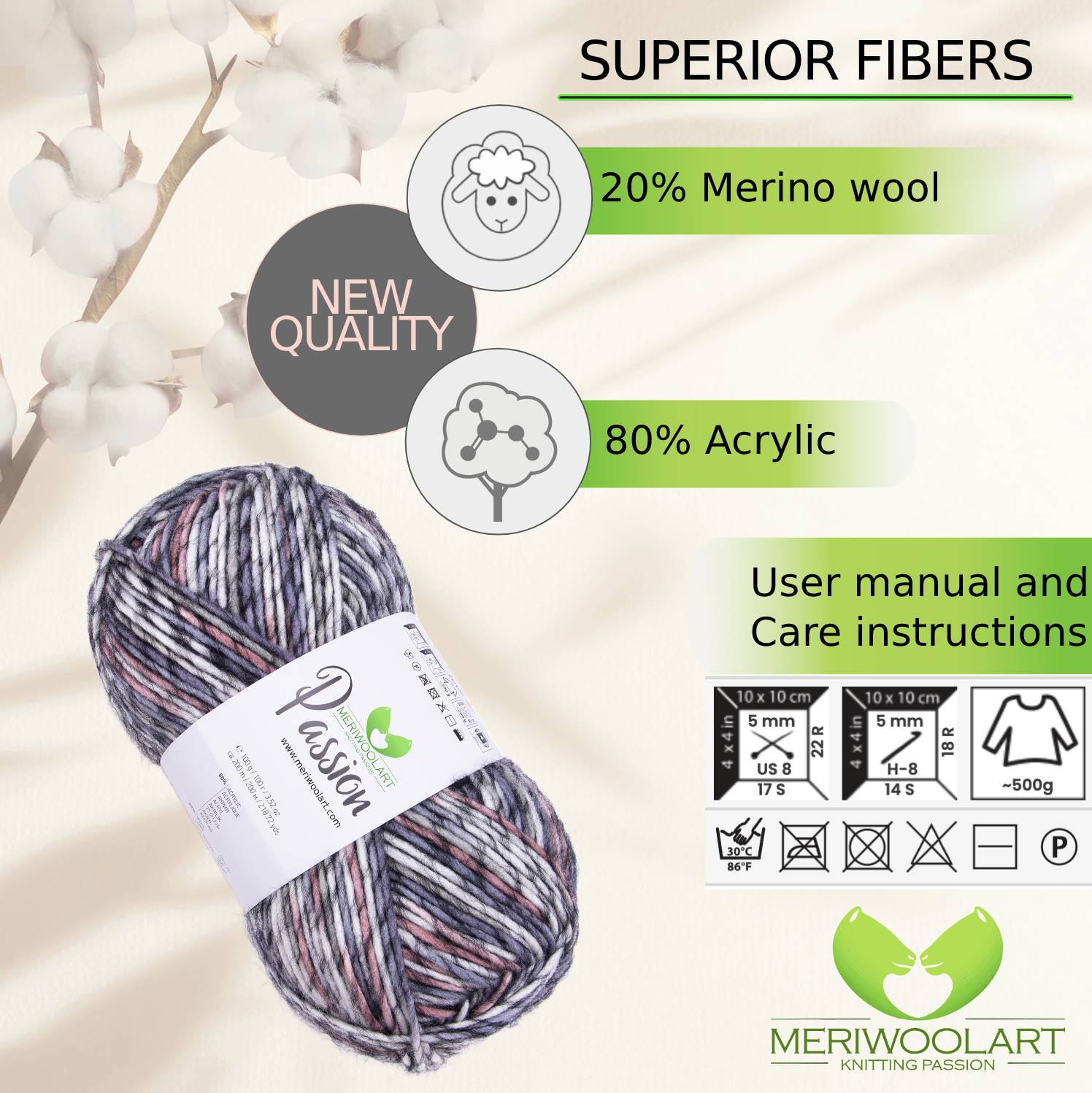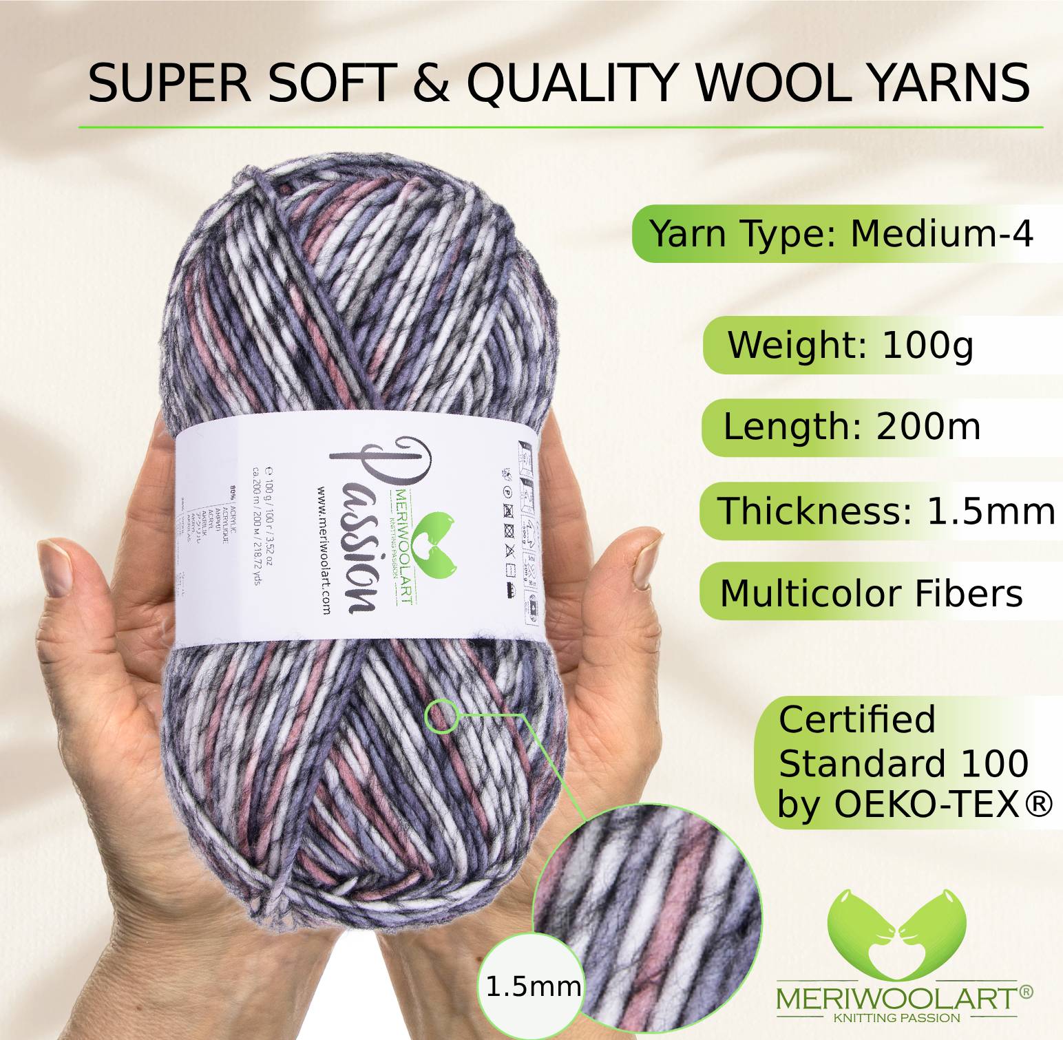 Experience the luxury of MeriWoolArt® Colorful XL Merino Knitting Wool, perfect for DIY projects, sweaters, jackets, scarves, blankets, and creative gifts.