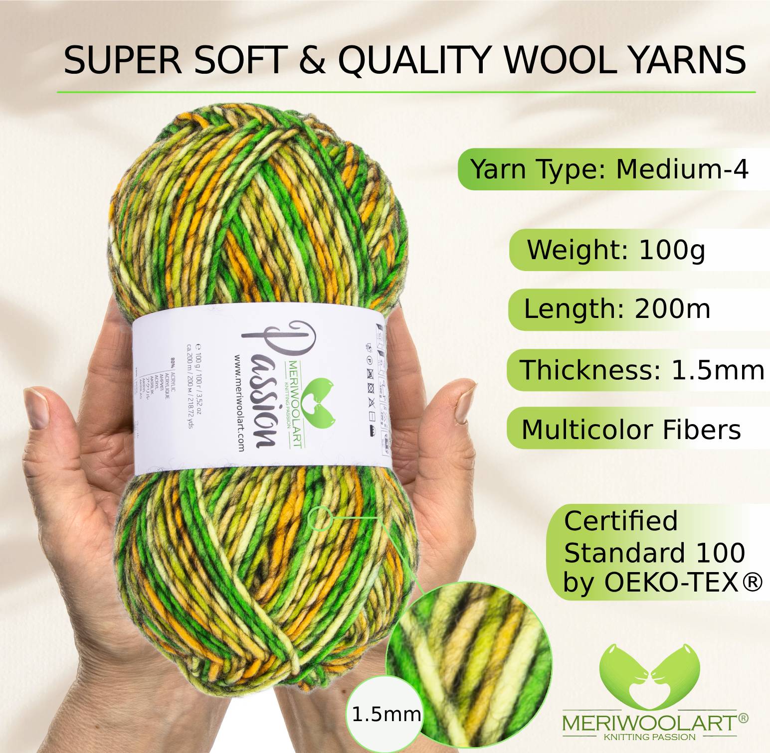 Experience the luxury of MeriWoolArt® Colorful XL Merino Knitting Wool, perfect for DIY projects, sweaters, jackets, scarves, blankets, and creative gifts.