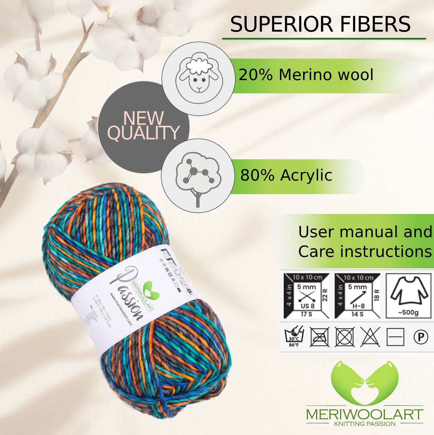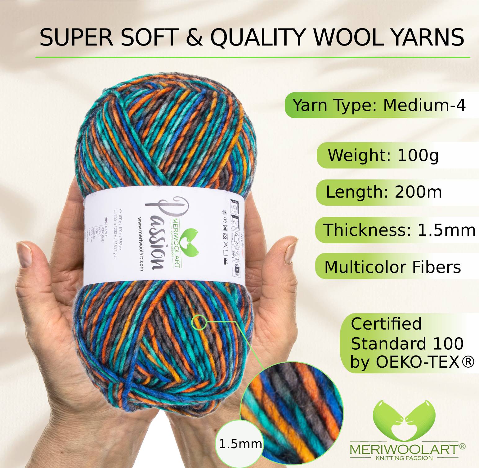 Experience the luxury of MeriWoolArt® Colorful XL Merino Knitting Wool, perfect for DIY projects, sweaters, jackets, scarves, blankets, and creative gifts.