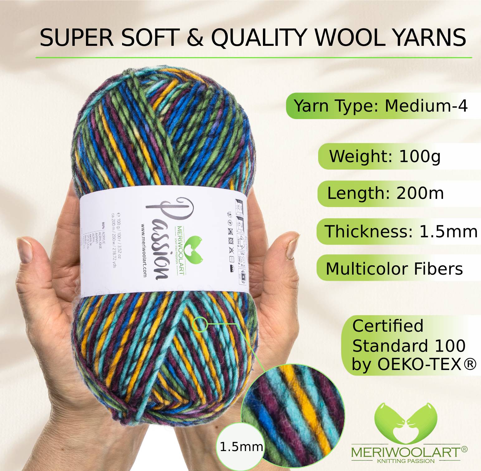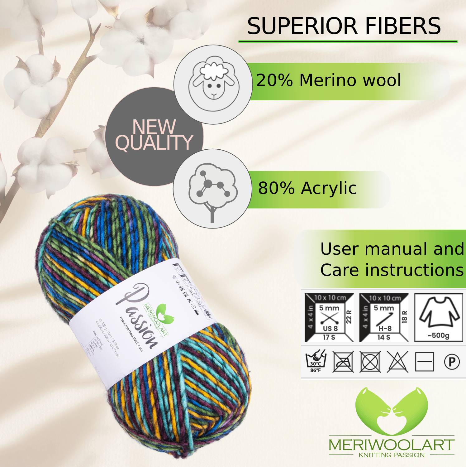 Experience the luxury of MeriWoolArt® Colorful XL Merino Knitting Wool, perfect for DIY projects, sweaters, jackets, scarves, blankets, and creative gifts.