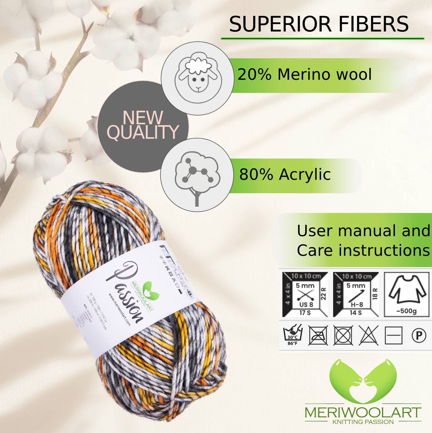 Experience the luxury of MeriWoolArt® Colorful XL Merino Knitting Wool, perfect for DIY projects, sweaters, jackets, scarves, blankets, and creative gifts.