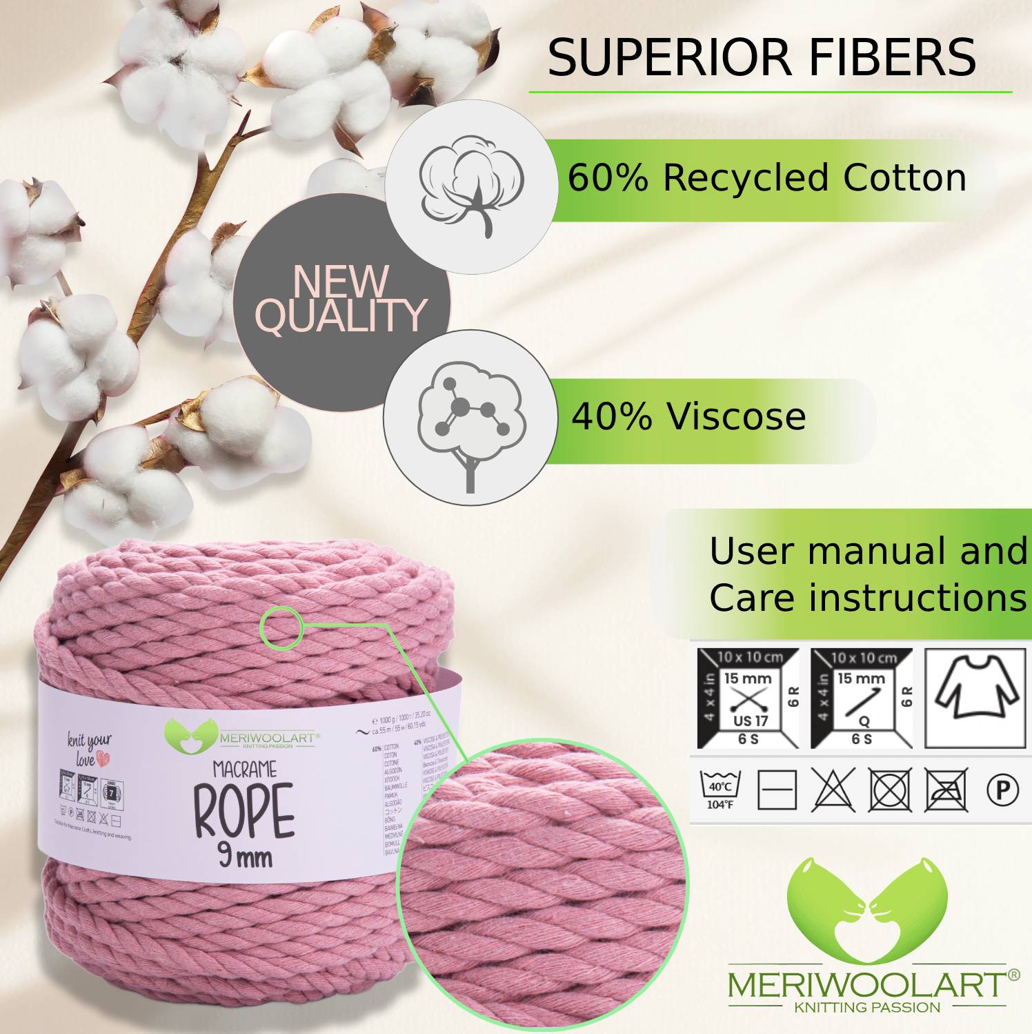 🌟 High-Quality Macramé Rope: Made from recycled cotton with durable viscose to prevent fraying; easy to handle and gentle on hands.