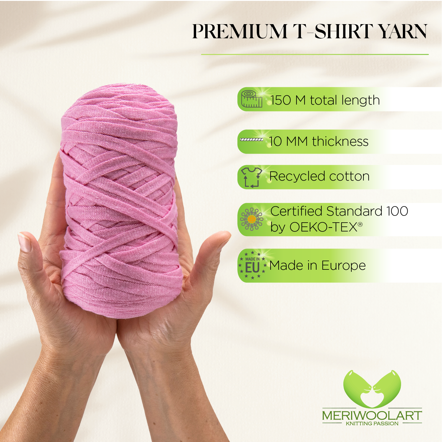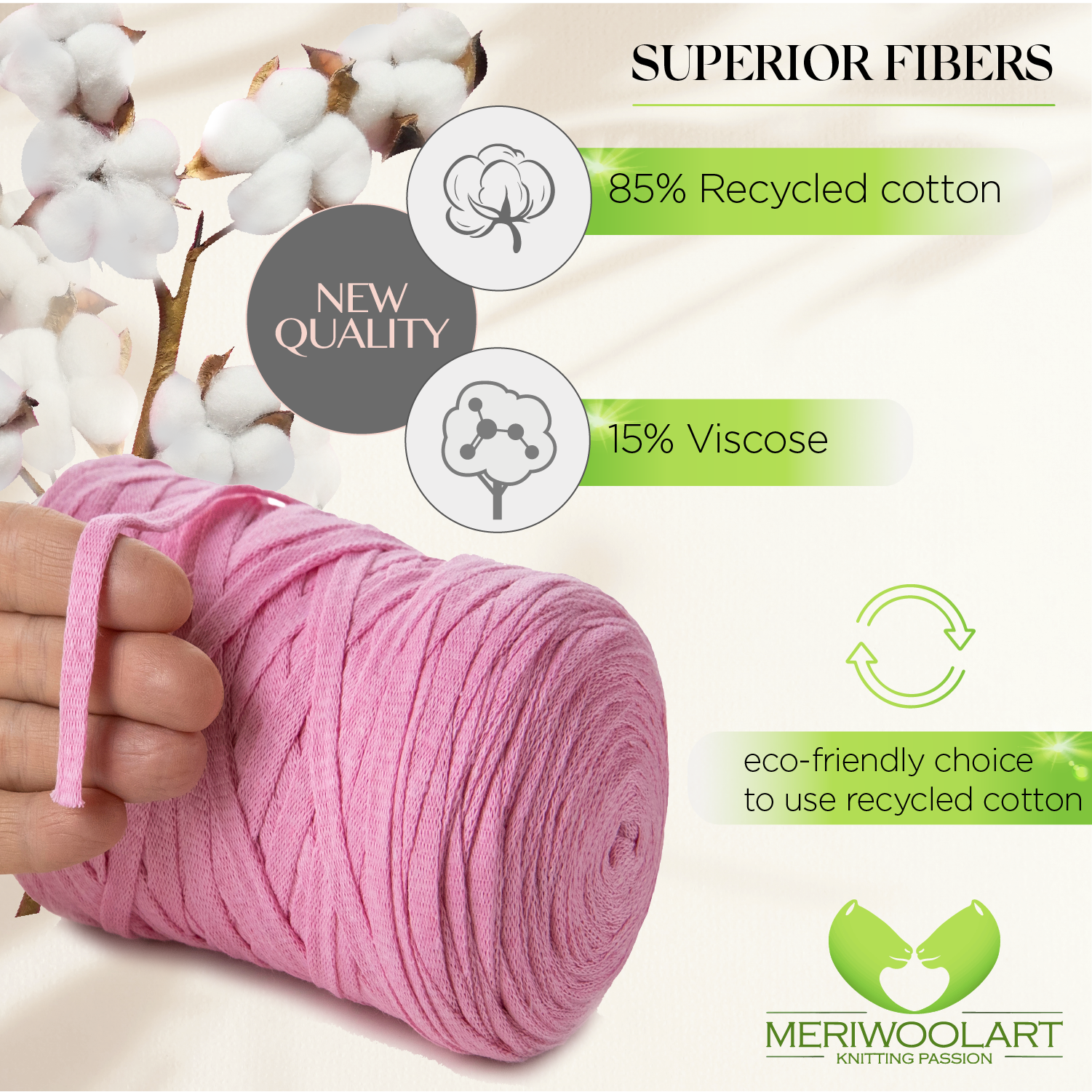 - MeriWoolArt T-shirt yarn for crocheting, knitting and macrame is gentle and easy to work with thanks to the special blend - recycled cotton yarn (85%) and durable viscose (15%).