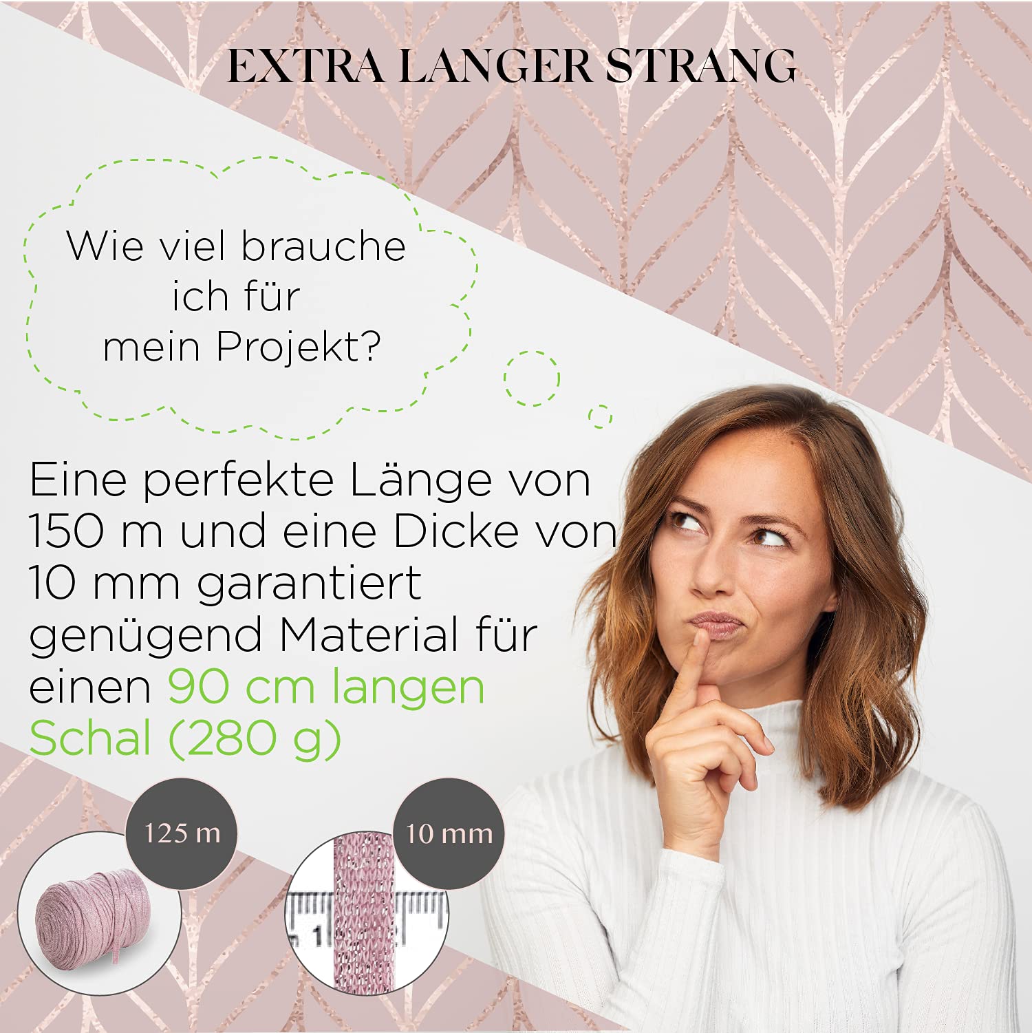 - A perfect length of 125 m of 10 mm thick cotton lurex ribbon guarantees enough material for a 90 cm long scarf (250 g).