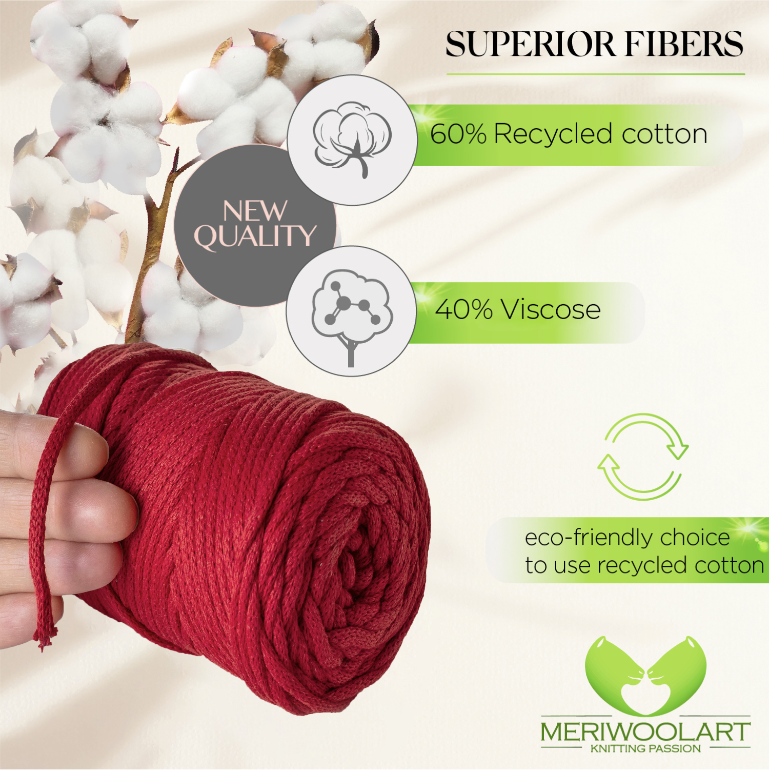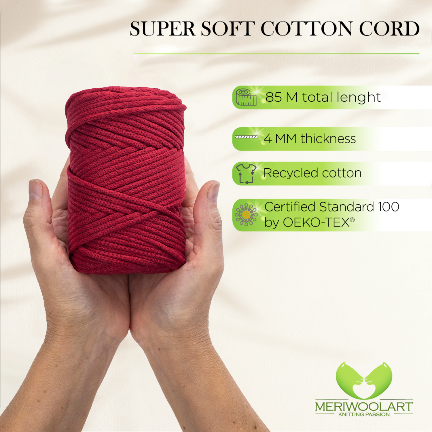 - Environmentally friendly thick cotton yarn for crochet and macramé knots of the highest quality.