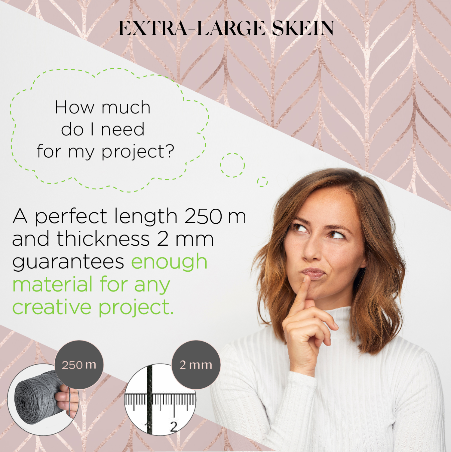 - Perfect for large projects, like a crochet bag or macramé pillow. The thick cord is made of three layers, making it durable, elastic and sustainable.