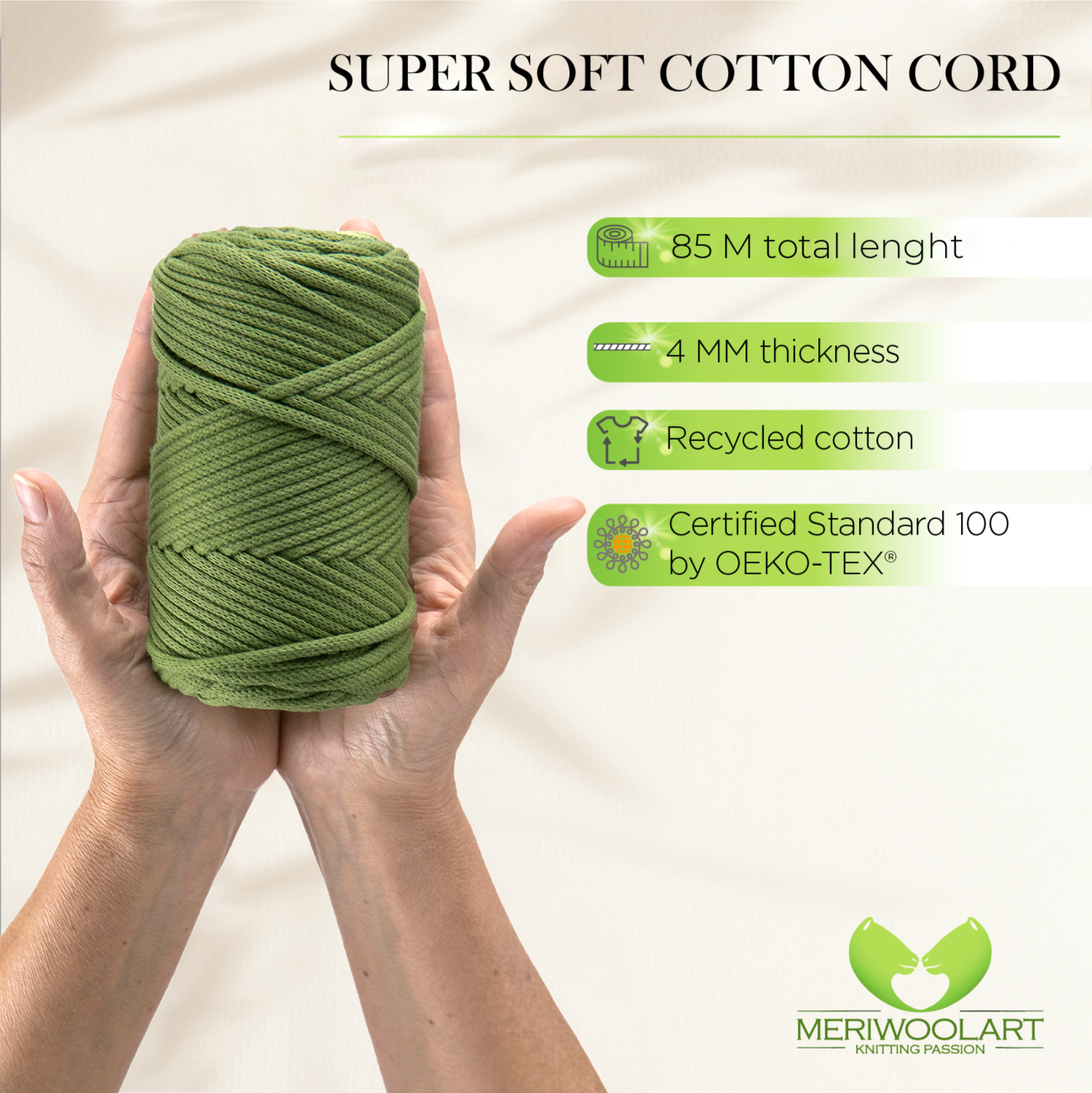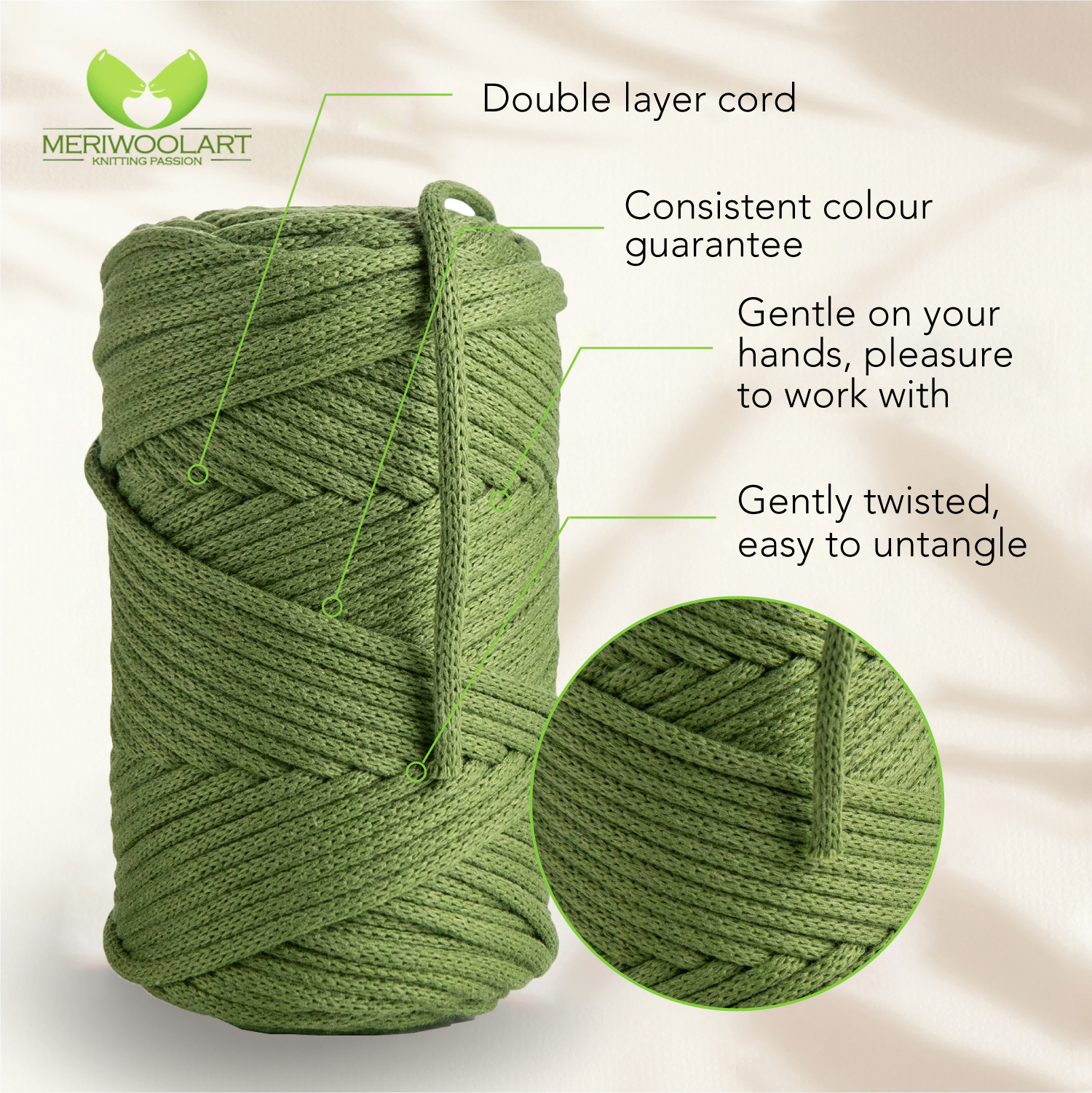 - Perfect for large projects, like a crochet bag or macramé pillow. The thick cord is made of two layers, making it durable, elastic and sustainable.