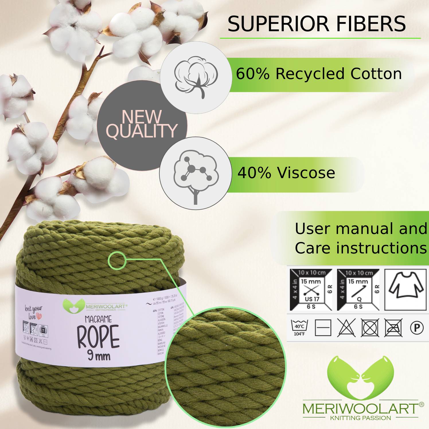 🌟 High-Quality Macramé Rope: Made from recycled cotton with durable viscose to prevent fraying; easy to handle and gentle on hands.
