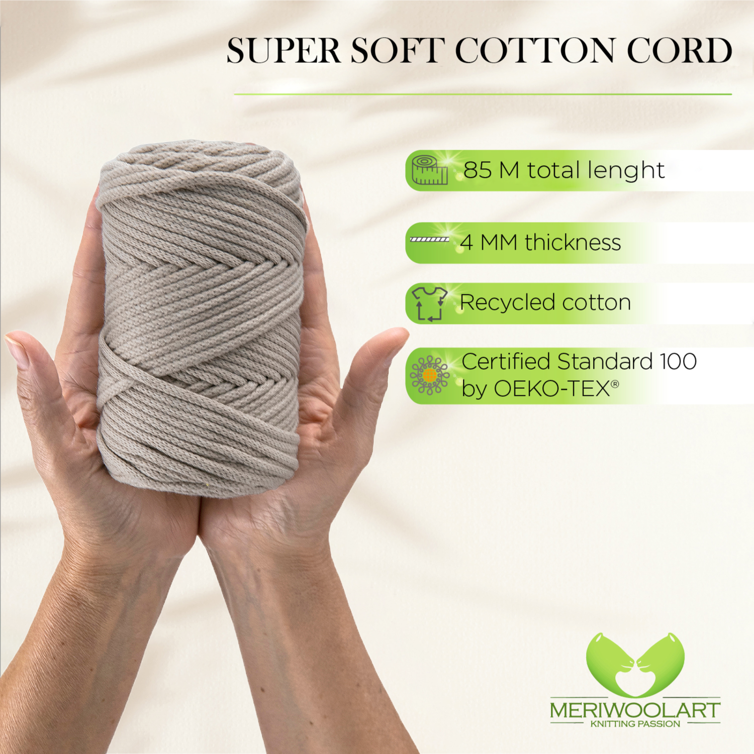 Our macramé cord 4mm - 85m is made from the highest quality recycled cotton rope.