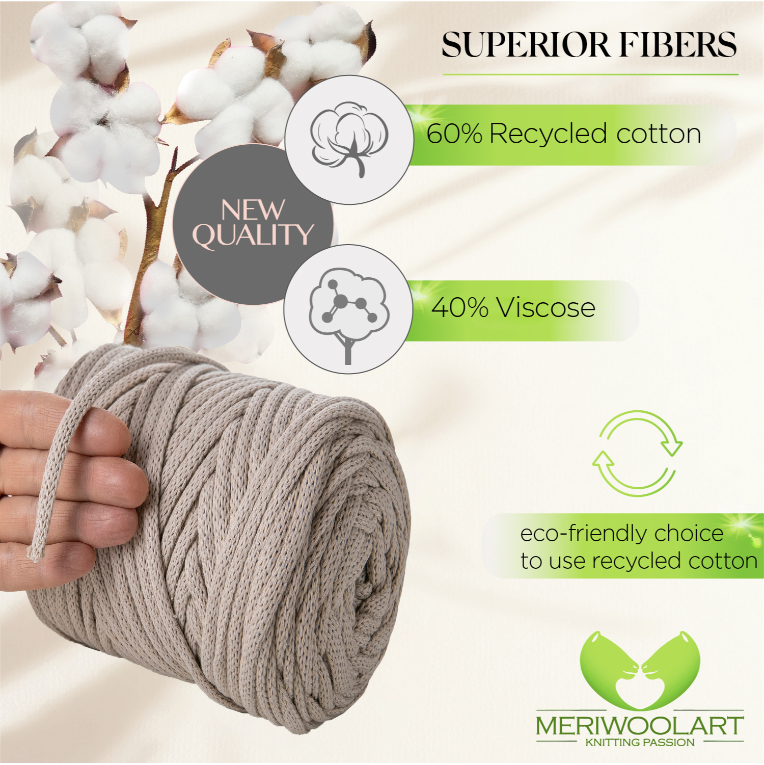 - Environmentally friendly thick cotton yarn for crochet and macramé knots of the highest quality.
