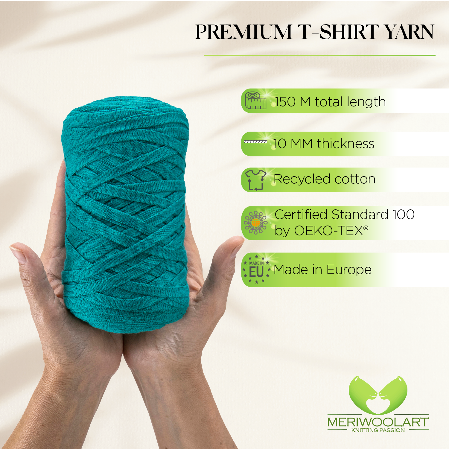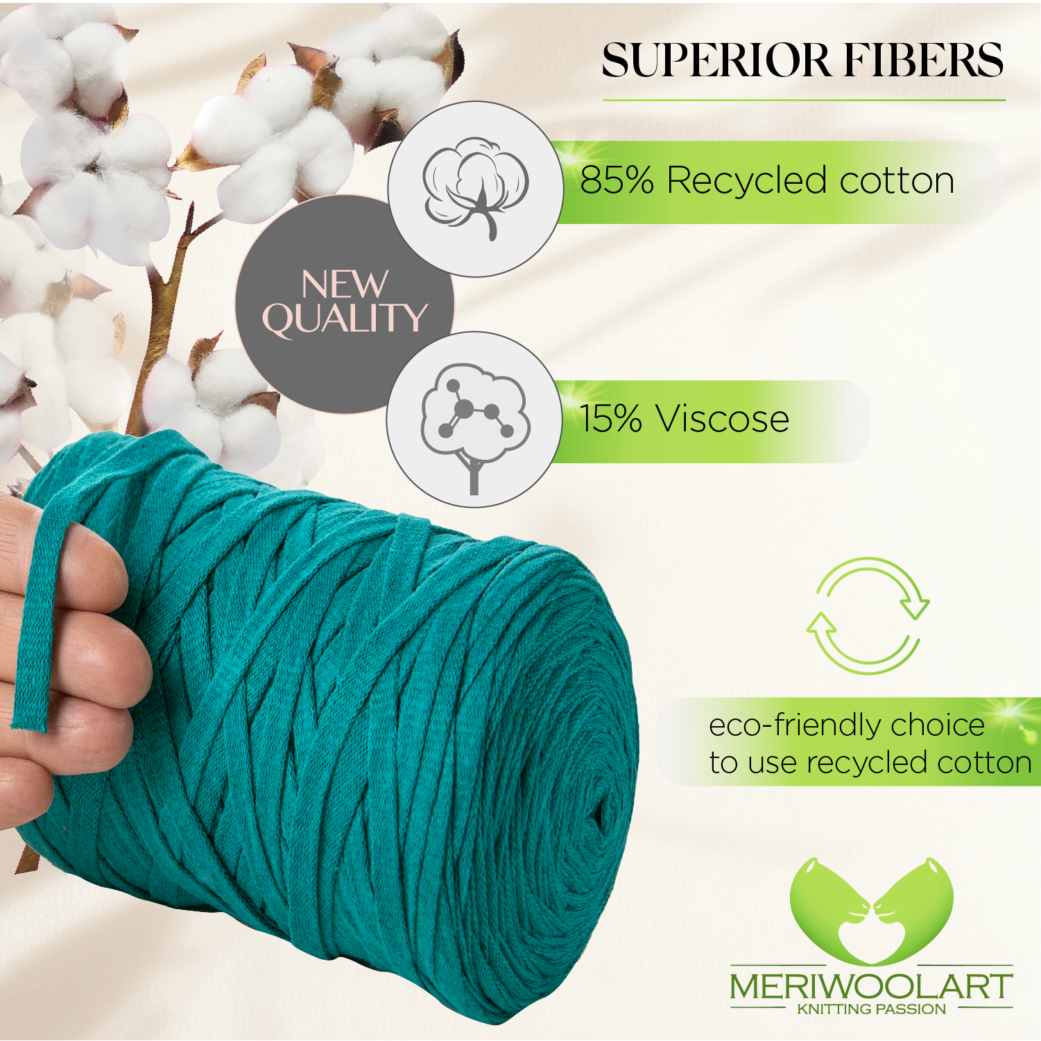- MeriWoolArt T-shirt yarn for crocheting, knitting and macrame is gentle and easy to work with thanks to the special blend - recycled cotton yarn (85%) and durable viscose (15%).