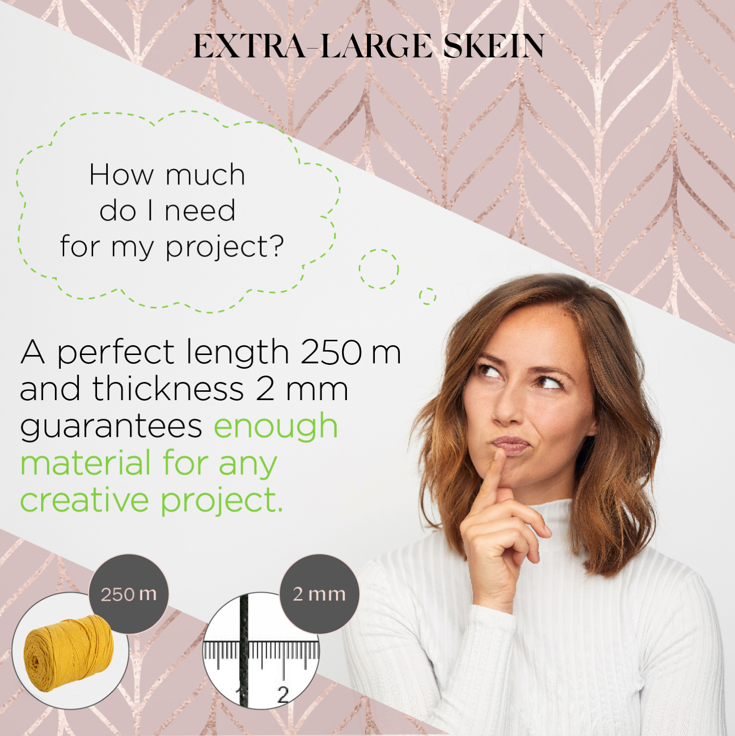 - Perfect for large projects, like a crochet bag or macramé pillow. The thick cord is made of three layers, making it durable, elastic and sustainable.