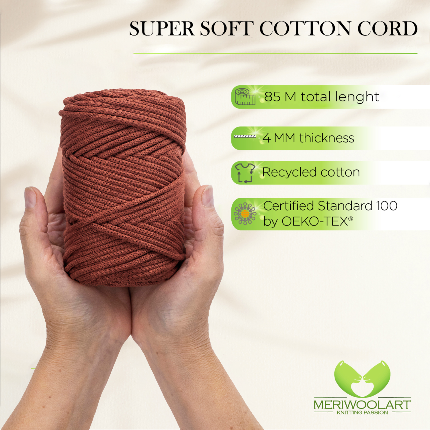 - Environmentally friendly thick cotton yarn for crochet and macramé knots of the highest quality.